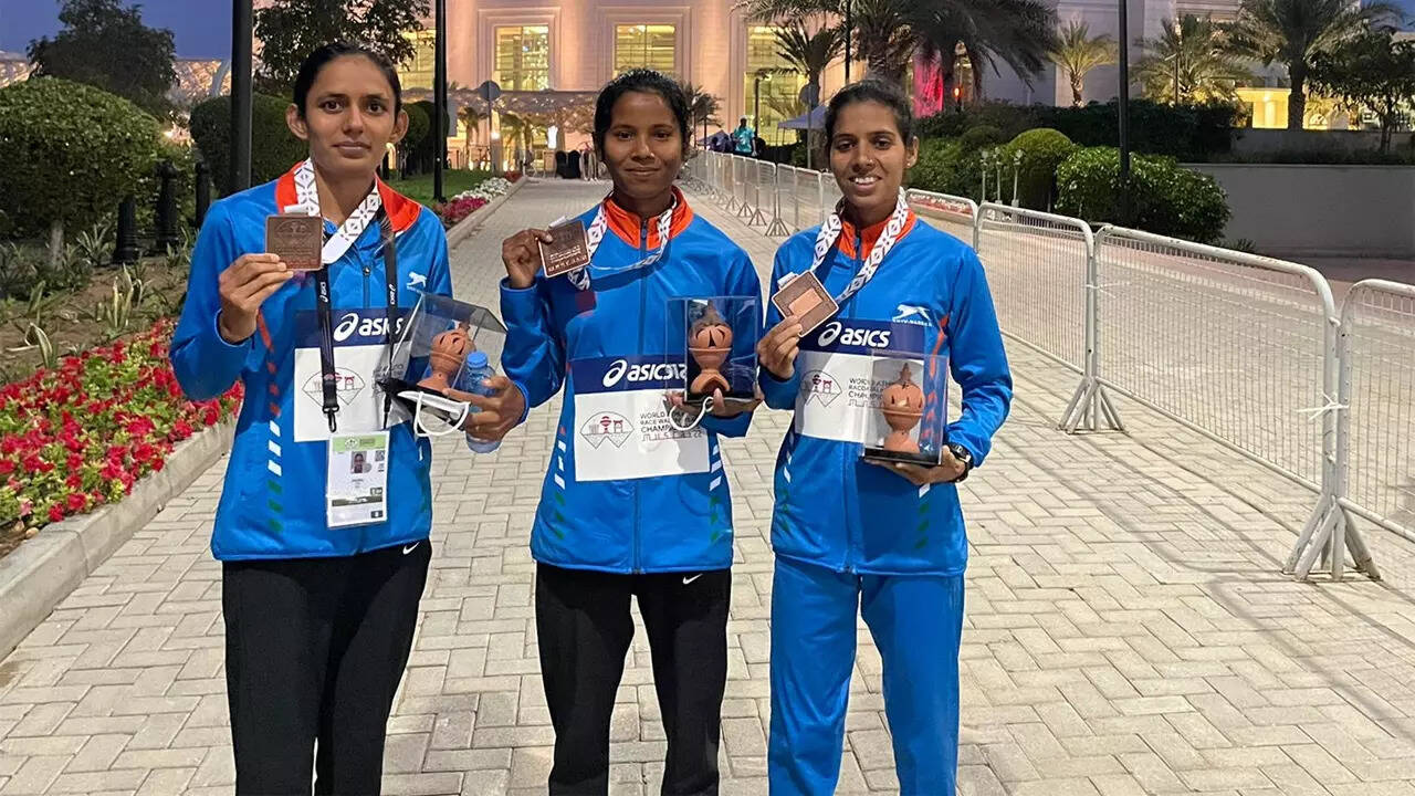 MUSCAT: The race walking trio of Bhawna Jat, Ravina and Munita Prajapati scripted history by winning the country's maiden women's 20km team medal, a bronze, at the World Athletics Race Walking Team Championships here on Friday.