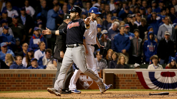 A ground ball advanced Chisenhall to second. The Cubs walked rookie outfielder Tyler Naquin to bring Kluber to the plate. Kluber hung with Lackey for eight pitches before chopping a swinging bunt up the third-base line. Kluber beat Bryant's throw to first, which got away from Rizzo. That error, also charged to Bryant, let Chisenhall sneak home.