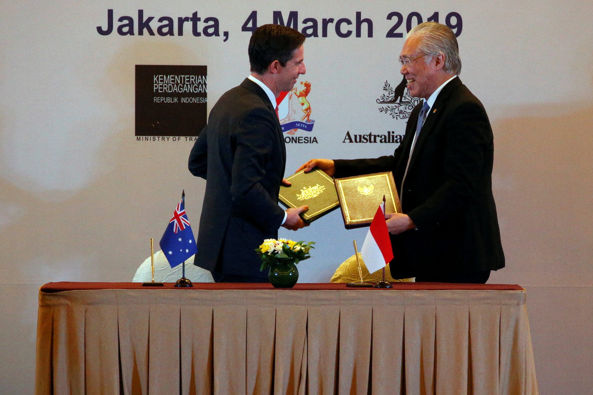 In Jakarta, Indonesian Trade Minister Enggartiasto Lukita and Australian Trade Minister Simon Birmingham signed the deal following completion of talks that started early in the decade and occasionally were stalled by diplomatic tension.