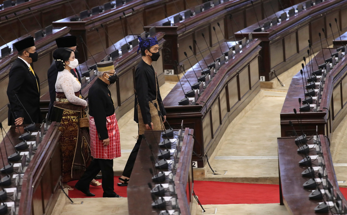 "What we need to do is find the best combination between public health and economic interests," said Jokowi, who wore a traditional outfit of Indonesia's Baduy people during his speech.