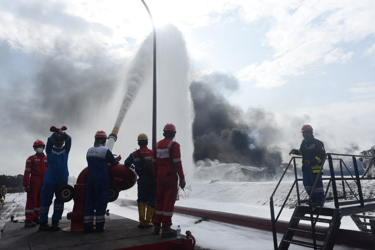 Pertamina said in a statement that by Wednesday afternoon, fires in all four affected storage units have been extinguished. Videos posted online showed massive flames and a huge black column of smoke rising from the site.