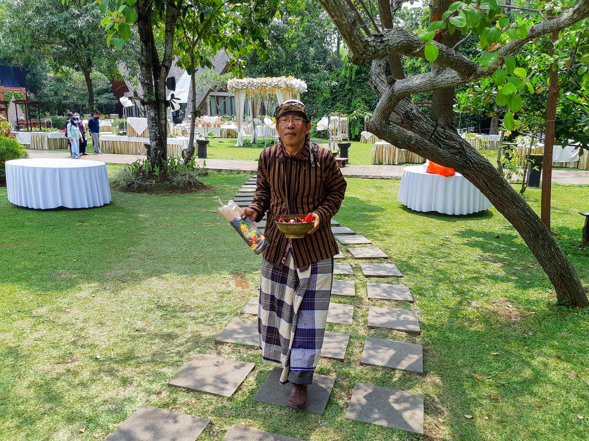 Ki Joko's first day back on the job involved an outdoor wedding in Bekasi, West Java, attended by 400 people, on a day when the weather forecast predicted storms and a 75% chance of rain.