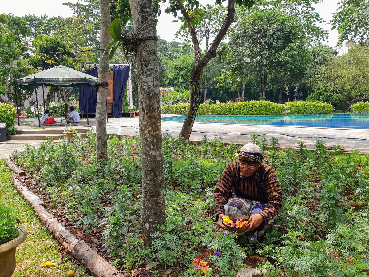 Surveying the venue's leafy perimeter, Ki Joko, in a Javanese shirt and batik bandana, stopped at a quiet corner and planted precious heirlooms, including a handful of small bronzed krises, or daggers, into the earth around a plate of fresh flowers.