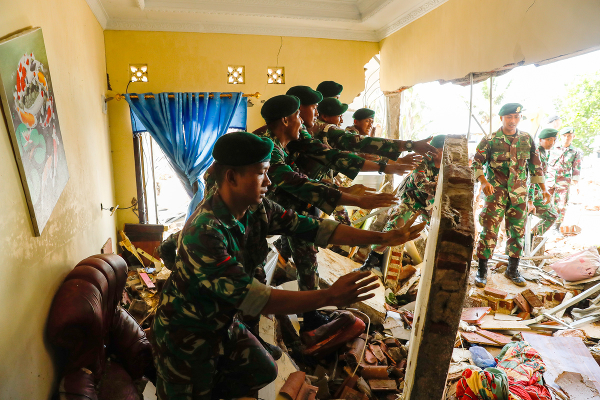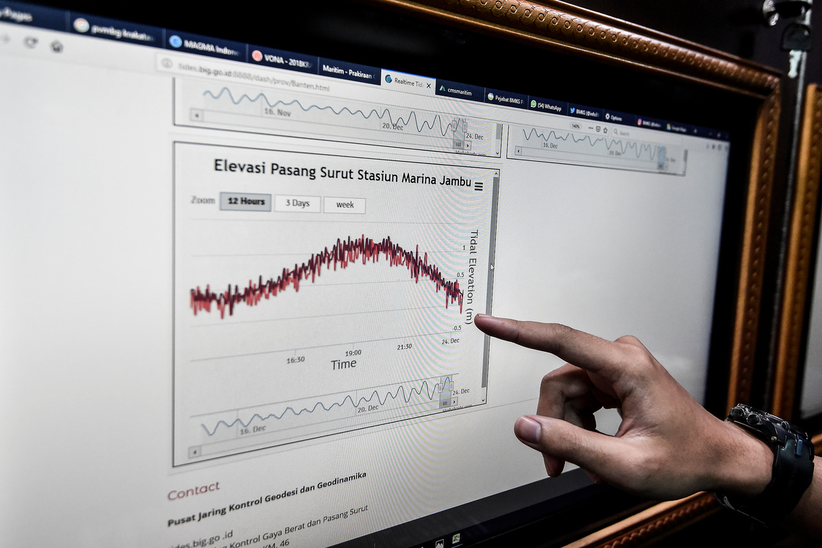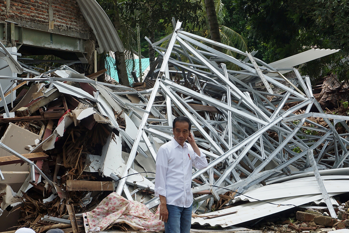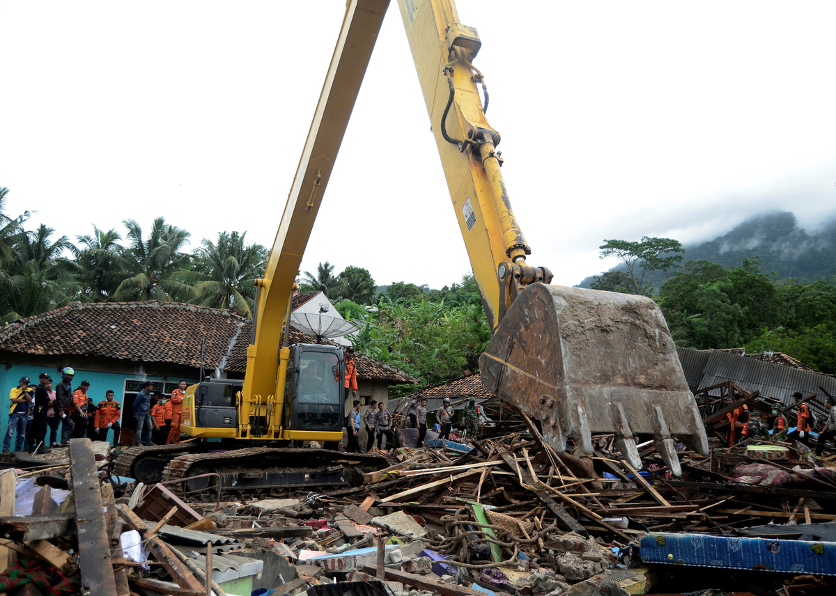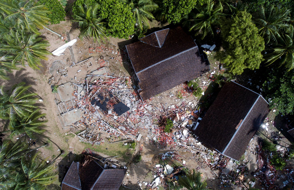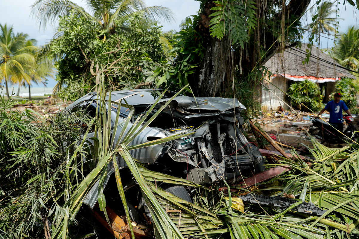 A car is seen in a rice field after a tsunami hit Sunda strait at Carita district in Pandeglang, Indonesia, December 24, 2018 in this photo taken by Antara Foto. Antara Foto/Akbar Nugroho Gumay/ via REUTERS A local moves mud to clean his neighbourhood after a tsunami hit at Anyer in Banten, Indonesia, December 24, 2018 in this photo taken by Antara Foto. Antara Foto/Muhammad Adimaja/ via REUTERSAn aerial view of an affected area after a tsunami hit the coast of Pandeglang, Banten province, Indonesia, December 24, 2018 in this photo taken by Antara Foto. Antara Foto/HO-Susi Air/ via REUTERS Rescue workers carry a body bag containing remains of a victim of a tsunami at the beach front hotel in Pandeglang, Banten province, Indonesia, December 24, 2018. REUTERS/Jorge SilvaAn aerial view of an affected island after a tsunami hit Sunda strait in Pandeglang, Banten province, Indonesia, December 24, 2018 in this photo taken by Antara Foto. Antara Foto/HO-Susi Air/via REUTERS Remaining parts of an outdoor stage, where a rock band Seventeen was performing, which was hit by a tsunami, lay on a shore at a resort in Tangung Lesung, Banten province, Indonesia, Indonesia, December 24, 2018. REUTERS/Jorge SilvaMourners carry the coffin of a victim of a tsunami that hit Sunda strait in Banten, at Banyudono district in Boyolali, Central Java province, Indonesia, December 24, 2018 in this photo taken by Antara Foto. Antara Foto/Aloysius Jarot Nugroho/via REUTERS Police officers search for victims among rubble of a destroyed beach front hotel which was hit by a tsunami in Pandeglang, Banten province, Indonesia, December 24, 2018. REUTERS/Jorge SilvaAn aerial view after a tsunami hit Carita district in Pandeglang, Banten province, Indonesia, December 24, 2018 in this photo taken by Antara Foto. Antara Foto/Akbar Nugroho Gumay/via REUTERS A worker lifts up a head of destroyed statue at the beach front hotel which was hit by a tsunami in Pandeglang, Banten province, Indonesia, December 24, 2018. REUTERS/Jorge SilvaRelatives pray for victims of a tsunami that hit Sunda strait in Banten, at Banyudono district in Boyolali, Central Java province, Indonesia, December 24, 2018 in this photo taken by Antara Foto. Antara Foto/Aloysius Jarot Nugroho/ via REUTERS Indonesian President Joko Widodo walks among debris as he visits an area affected by a tsunami at Carita district in Pandeglang, Banten province, Indonesia, December 24, 2018 in this photo taken by Antara Foto. Antara Foto/Asep Fathulrahman/via REUTERS Soldiers search for bodies under a collapsed wall in a beach front hotel, which was hit by a tsunami in Pandeglang, Banten province, Indonesia, December 24, 2018. REUTERS/Jorge SilvaA man stands in front of his destroyed house, after it was hit by a tsunami in Pandeglang, Banten province, Indonesia, December 24, 2018. REUTERS/Jorge SilvaIndonesian President Joko Widodo looks on near the collapsed Hotel Mutiara Carita after it was hit by a tsunami in Pandeglang, Banten province, Indonesia, December 24, 2018 in this photo taken by Antara Foto. Antara Foto/Bayu Prasetyo/via REUTERS. Indonesian President Joko Widodo walks as he inspects an affected area hit by a tsunami in Pandeglang, Banten province, Indonesia, December 24, 2018 in this photo taken by Antara Foto. Antara Foto/Bayu Prasetyo/via REUTERS. An aerial view after a tsunami hit Carita district in Pandeglang, Banten province, Indonesia, December 24, 2018 in this photo taken by Antara Foto. Antara Foto/Akbar Nugroho Gumay/via REUTERSA man pauses as he stands next to debris at his house which was hit by the tsunami in Pandeglang, Banten province, Indonesia, December 24, 2018. REUTERS/Jorge SilvaA man holds a chicken at his house which was hit by the tsunami in Pandeglang, Banten province, Indonesia, December 24, 2018. REUTERS/Jorge SilvaA teenage boy cries after finding his relatives among the ruins of his house which was hit by the tsunami in Pandeglang, Banten province, Indonesia, December 24, 2018. REUTERS/Jorge SilvaA man carries a chicken as he searches for belonging at his house hit by the tsunami in Pandeglang, Banten province, Indonesia, December 24, 2018. REUTERS/Jorge SilvaRescue workers carry a body bag containing the remains of a victim of the tsunami in Pandeglang, Banten province, Indonesia, December 24, 2018. REUTERS/Jorge SilvaRescue team members search for victims among debris after a tsunami hit at Rajabasa district in South Lampung, Indonesia, December 23, 2018 in this photo taken by Antara Foto. Antara Foto/Ardiansyah/ via REUTERS A woman searches among belonging at her house which was hit by the tsunami in Pandeglang, Banten province, Indonesia, December 24, 2018. REUTERS/Jorge SilvaDestroyed boats are seen after a tsunami hit an area near Carita in Pandeglang, Banten province, Indonesia, December 24, 2018. REUTERS/Jorge SilvaResidents, who lived at coast of Bandar Lampung, rest at government building after they evacuated following a tsunami hit Sunda strait in Lampung, Indonesia, in this December 24, 2018 photo taken by Antara Foto. Antara Foto/Ardiansyah/ via REUTERS A victim of the tsunami is pictured at a hospital in Pandeglang, Banten province, Indonesia, December 24, 2018. REUTERS/Jorge SilvaOfficer of Geophysics Agency looks at a chart on tidal wave elevation following a tsunami hit Sunda strait at Merak port in Banten, Indonesia, December 24, 2018 in this photo taken by Antara Foto. Antara Foto/Muhammad Adimaja/ via REUTERS Officer of Geophysics Agency looks at charts on tidal wave elevation following a tsunami hit Sunda strait at Merak port in Banten, Indonesia, December 24, 2018 in this photo taken by Antara Foto. Antara Foto/Muhammad Adimaja/ via REUTERS A destroyed boat is seen after a tsunami hit an area near Carita in Pandeglang, Banten province, Indonesia, December 24, 2018. REUTERS/Jorge SilvaAn injured boy is carried by a police officer after evacuating from a hotel that collapsed due to the tsunami at Carita in Pandeglang