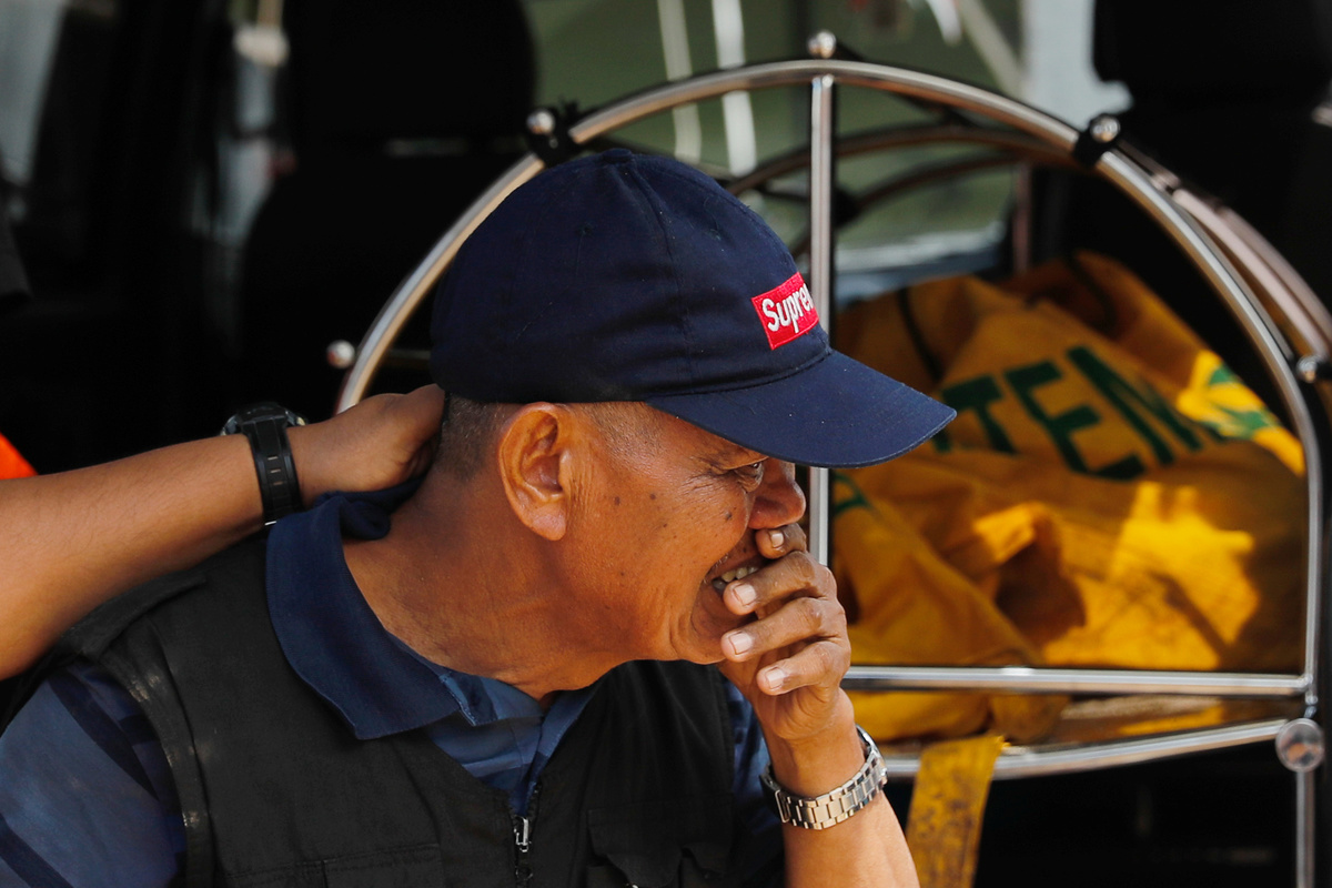 A man reacts after identifying a relative during a rescue operation at the beach front hotel, which was hit by a tsunami in Pandeglang, Banten province, Indonesia, December 24, 2018. REUTERS/Jorge Silva