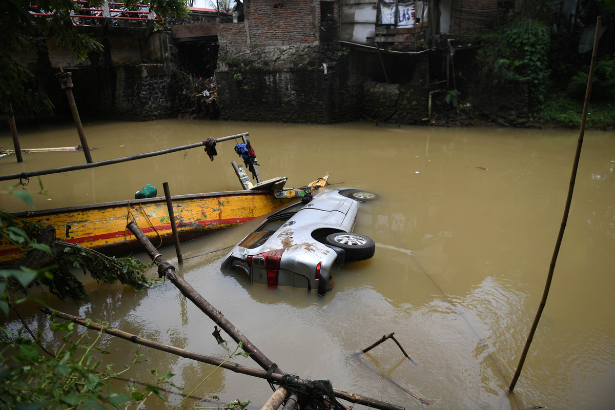 A car is seen in a river after a tsunami hit Sunda strait at Carita district in Pandeglang, Indonesia, December 24, 2018 in this photo taken by Antara Foto. Antara Foto/Akbar Nugroho Gumay/ via REUTERS