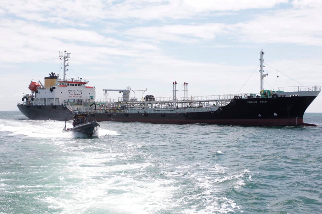 The Panamanian-flagged MT Zodiac Star was located Wednesday after the navy received an intelligence tip about a suspicious tanker near Tolop island and escorted it about 22 kilometers (13 miles) to a naval base in Batam on the Indonesian archipelago’s northwestern tip near Singapore said Rear Admiral Arsyad Abdullah, the country’s western fleet commander.