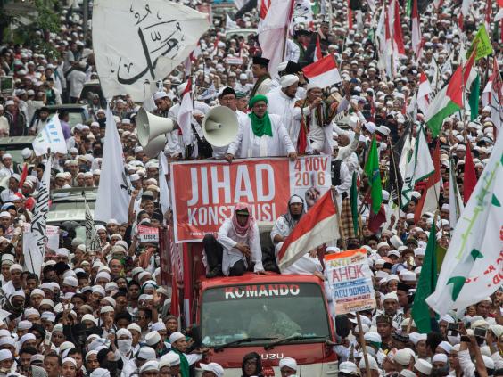 Mr Purnama apologised for the remarks, but his opponents, particularly The Islamic Defenders Front - a vigilante group wanting to impose Sharia Law - have bolstered support calling for his arrest and incarceration under Indonesia's blasphemy laws.