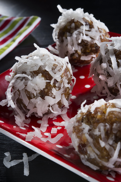 Dates are high in fiber and a good source of protein and iron. These energy balls also work for a variety of special diets. They are gluten-free, as long as you select ingredients labeled gluten-free and processed in a gluten-free plant.