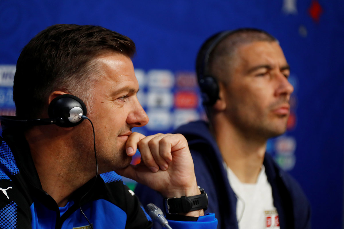 Soccer Football - World Cup - Serbia Press Conference - Samara Arena, Samara, Russia - June 16, 2018 Serbia coach Mladen Krstajic during the press conference REUTERS/David Gray