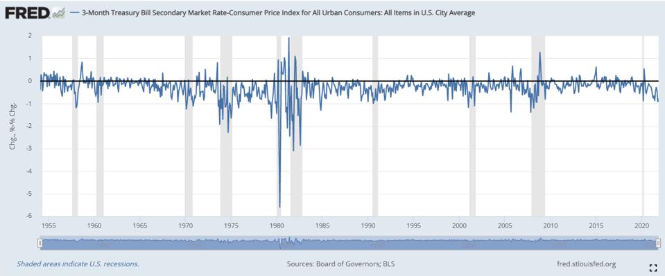 Why Inflation Matters. Inflation is critical to our retirement planning considerations because it sets our ‘real rate of return’, or what we make after inflation. So, if our portfolio is making 3% and inflation is 3%, we are standing still. If inflation is 6% and we’re making 2%, we’re going backwards. Here’s a chart from the Fed to show the Treasury rate minus CPI. Note that we’re in the negative territory: