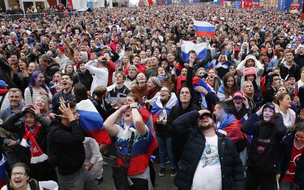 With Russian Prime Minister Dmitry Medvedev watching from the stands, Russia's qualification triggered a wave of enthusiasm for the host nation as thousands celebrated in the capital's iconic Red Square and beyond.
