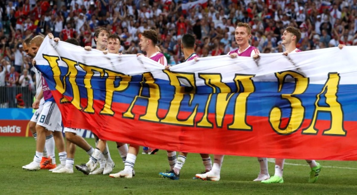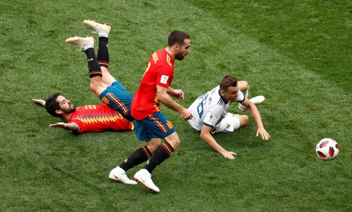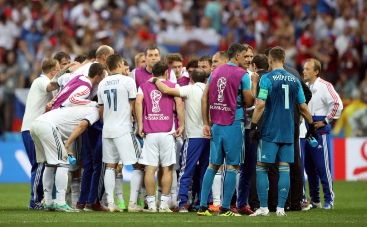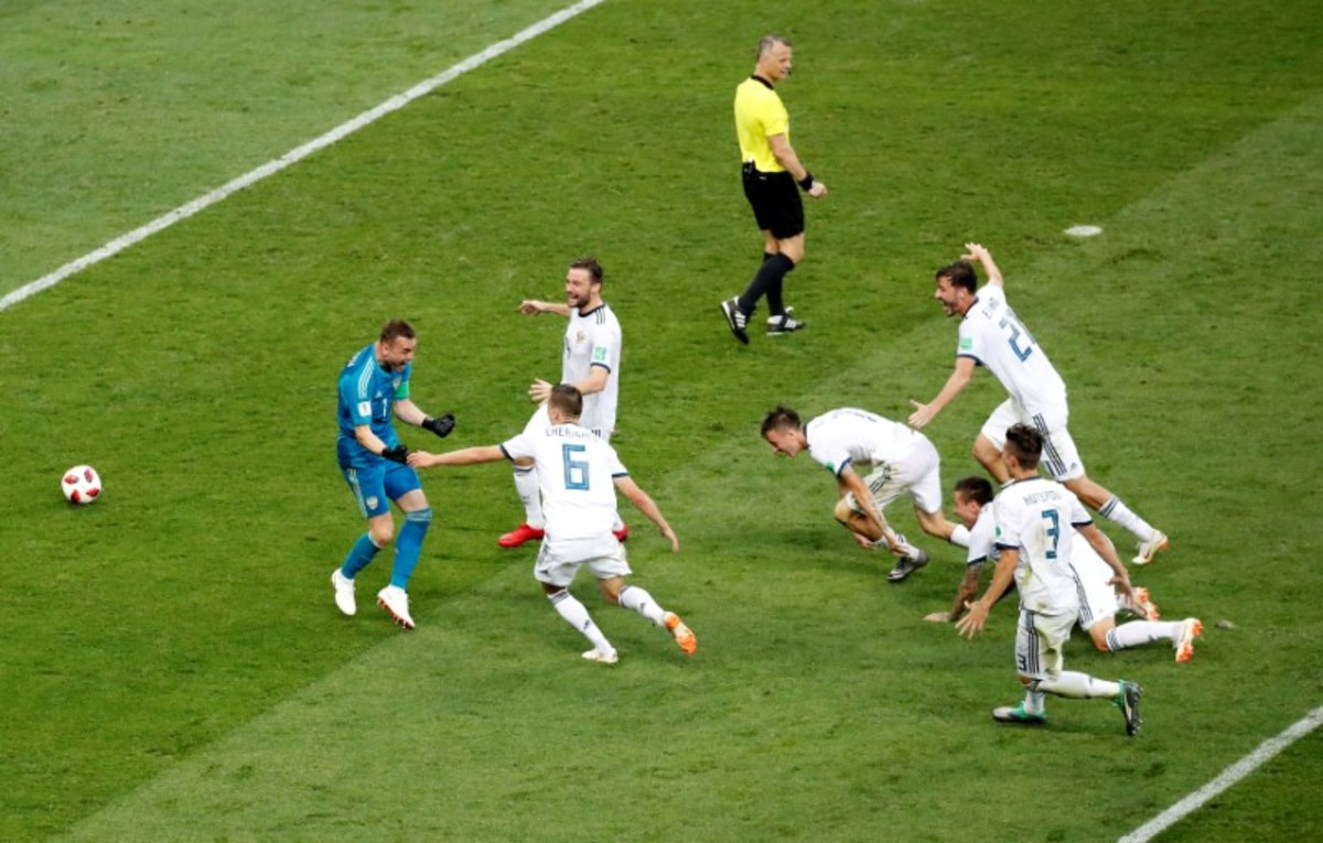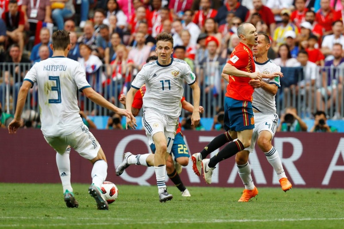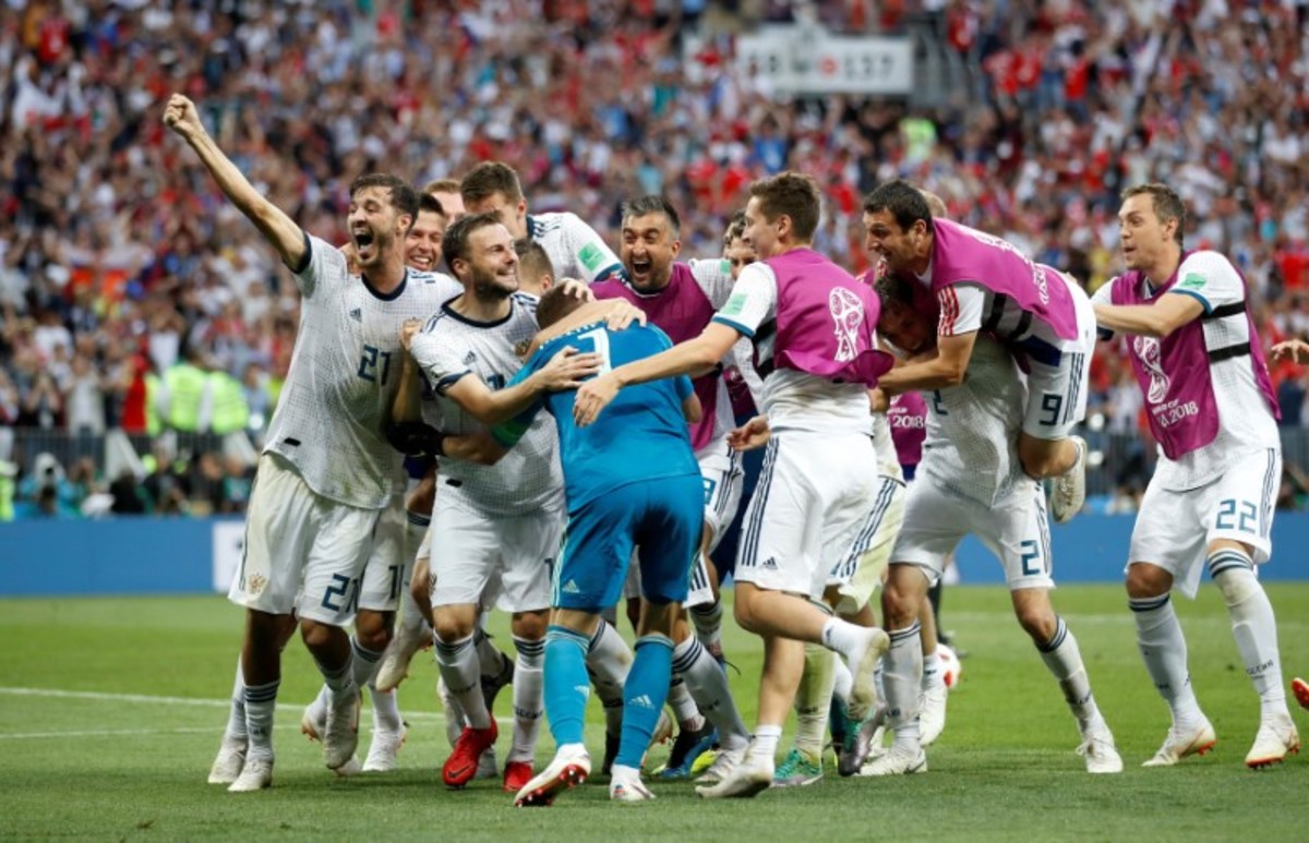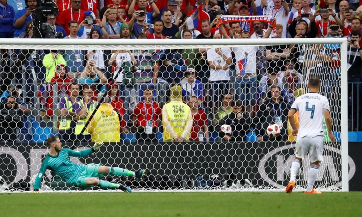 Soccer Football - World Cup - Round of 16 - Spain vs Russia - Luzhniki Stadium, Moscow, Russia - July 1, 2018 Russia's Sergei Ignashevich scores a penalty during the shootout REUTERS/Kai PfaffenbachSoccer Football - World Cup - Round of 16 - Spain vs Russia - Luzhniki Stadium, Moscow, Russia - July 1, 2018 Russia's Denis Cheryshev celebrates after scoring his penalty during the shootout REUTERS/Maxim ShemetovSoccer Football - World Cup - Round of 16 - Spain vs Russia - Luzhniki Stadium, Moscow, Russia - July 1, 2018 Russia players celebrate during the penalty shootout REUTERS/Carl RecineSoccer Football - World Cup - Round of 16 - Spain vs Russia - Luzhniki Stadium, Moscow, Russia - July 1, 2018 Russia's Fyodor Smolov scores a penalty during the shootout past Spain's David de Gea REUTERS/Grigory DukorSoccer Football - World Cup - Round of 16 - Spain vs Russia - Luzhniki Stadium, Moscow, Russia - July 1, 2018 Spain players during the penalty shootout REUTERS/Carl RecineSoccer Football - World Cup - Round of 16 - Spain vs Russia - Luzhniki Stadium, Moscow, Russia - July 1, 2018 Russia players during the penalty shootout REUTERS/Carl RecineSoccer Football - World Cup - Round of 16 - Spain vs Russia - Luzhniki Stadium, Moscow, Russia - July 1, 2018 Spain's Koke looks dejected after missing a penalty during the shootout REUTERS/Christian HartmannSoccer Football - World Cup - Round of 16 - Spain vs Russia - Luzhniki Stadium, Moscow, Russia - July 1, 2018 Russia players talk before the penalty shootout REUTERS/Carl RecineSoccer Football - World Cup - Round of 16 - Spain vs Russia - Luzhniki Stadium, Moscow, Russia - July 1, 2018 Spain players in a huddle before the penalty shootout REUTERS/Grigory DukorSoccer Football - World Cup - Round of 16 - Spain vs Russia - Luzhniki Stadium, Moscow, Russia - July 1, 2018 Russia's Artem Dzyuba scores their first goal from a penalty REUTERS/Kai PfaffenbachSoccer Football - World Cup - Round of 16 - Spain vs Russia - Luzhniki Stadium, Moscow, Russia - July 1, 2018 Russia's Artem Dzyuba scores their first goal from a penalty REUTERS/Kai PfaffenbachSoccer Football - World Cup - Round of 16 - Spain vs Russia - Luzhniki Stadium, Moscow, Russia - July 1, 2018 Russia's Artem Dzyuba celebrates scoring their first goal REUTERS/Kai PfaffenbachSoccer Football - World Cup - Round of 16 - Spain vs Russia - Luzhniki Stadium, Moscow, Russia - July 1, 2018 Russia's Artem Dzyuba celebrates scoring their first goal REUTERS/Kai PfaffenbachSoccer Football - World Cup - Round of 16 - Spain vs Russia - Luzhniki Stadium, Moscow, Russia - July 1, 2018 Russia's Artem Dzyuba scores their first goal from the penalty spot REUTERS/Maxim ShemetovSoccer Football - World Cup - Round of 16 - Spain vs Russia - Luzhniki Stadium, Moscow, Russia - July 1, 2018 Spain's Andres Iniesta in action with Russia's Sergei Ignashevich and Aleksandr Golovin REUTERS/Kai PfaffenbachSoccer Football - World Cup - Round of 16 - Spain vs Russia - Luzhniki Stadium, Moscow, Russia - July 1, 2018 Russia's Denis Cheryshev in action with Spain's Isco and Dani Carvajal REUTERS/Maxim ShemetovSoccer Football - World Cup - Round of 16 - Spain vs Russia - Luzhniki Stadium, Moscow, Russia - July 1, 2018 Russia's Artem Dzyuba celebrates scoring their first goal REUTERS/Maxim ShemetovSoccer Football - World Cup - Round of 16 - Spain vs Russia - Luzhniki Stadium, Moscow, Russia - July 1, 2018 Spain's Gerard Pique reacts REUTERS/Christian HartmannSoccer Football - World Cup - Round of 16 - Spain vs Russia - Saint Petersburg, Russia - July 1, 2018. Supporters react while watching the match in a fan zone. REUTERS/Anton VaganovSoccer Football - World Cup - Round of 16 - Spain vs Russia - Luzhniki Stadium, Moscow, Russia - July 1, 2018 Russia's Sergei Ignashevich scores an own goal and the first for Spain REUTERS/Maxim ShemetovSoccer Football - World Cup - Round of 16 - Spain vs Russia - Luzhniki Stadium, Moscow, Russia - July 1, 2018 Spain's Sergio Ramos celebrates after Russia's Sergei Ignashevich scored an own goal and the first goal for Spain REUTERS/Carl Recine