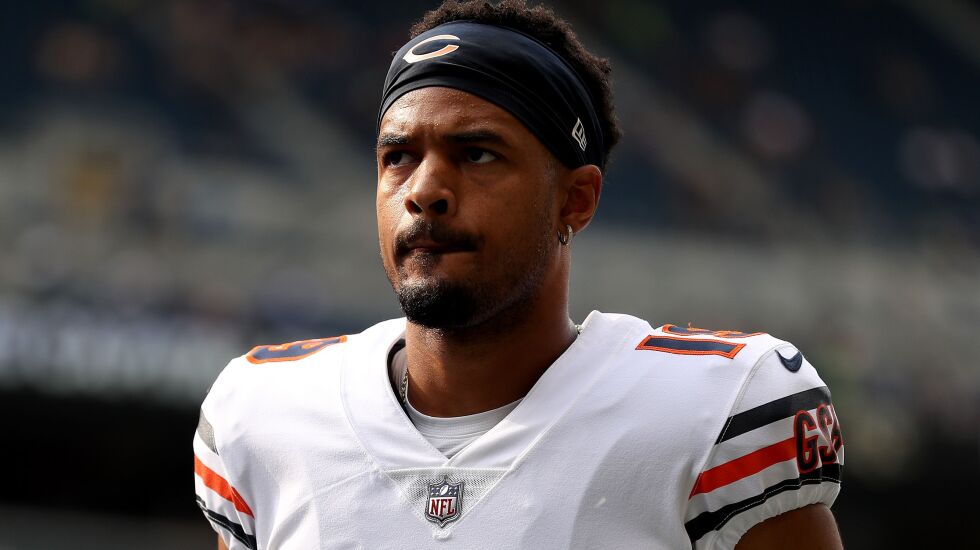 Byron Pringle has a quad injury and hasn’t practiced in almost three weeks. N’Keal Harry’s high-ankle sprain prompted surgery and a likely October return. Tajae Sharpe hasn’t practiced since his standout performance in the Bears’ preseason opener. Rookie Velus Jones played in Thursday’s preseason game against the Seahawks but has missed practice time with an injury both before and since.