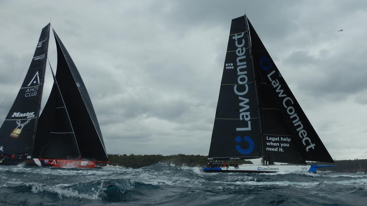 Back-to-back reigning line honours champion LawConnect exited the Sydney Heads first and was leading the fleet down the NSW Coast, sailing upwind in rough seas, around one nautical mile ahead of nearest rival Master Lock Comanche as she passed Wollongong.