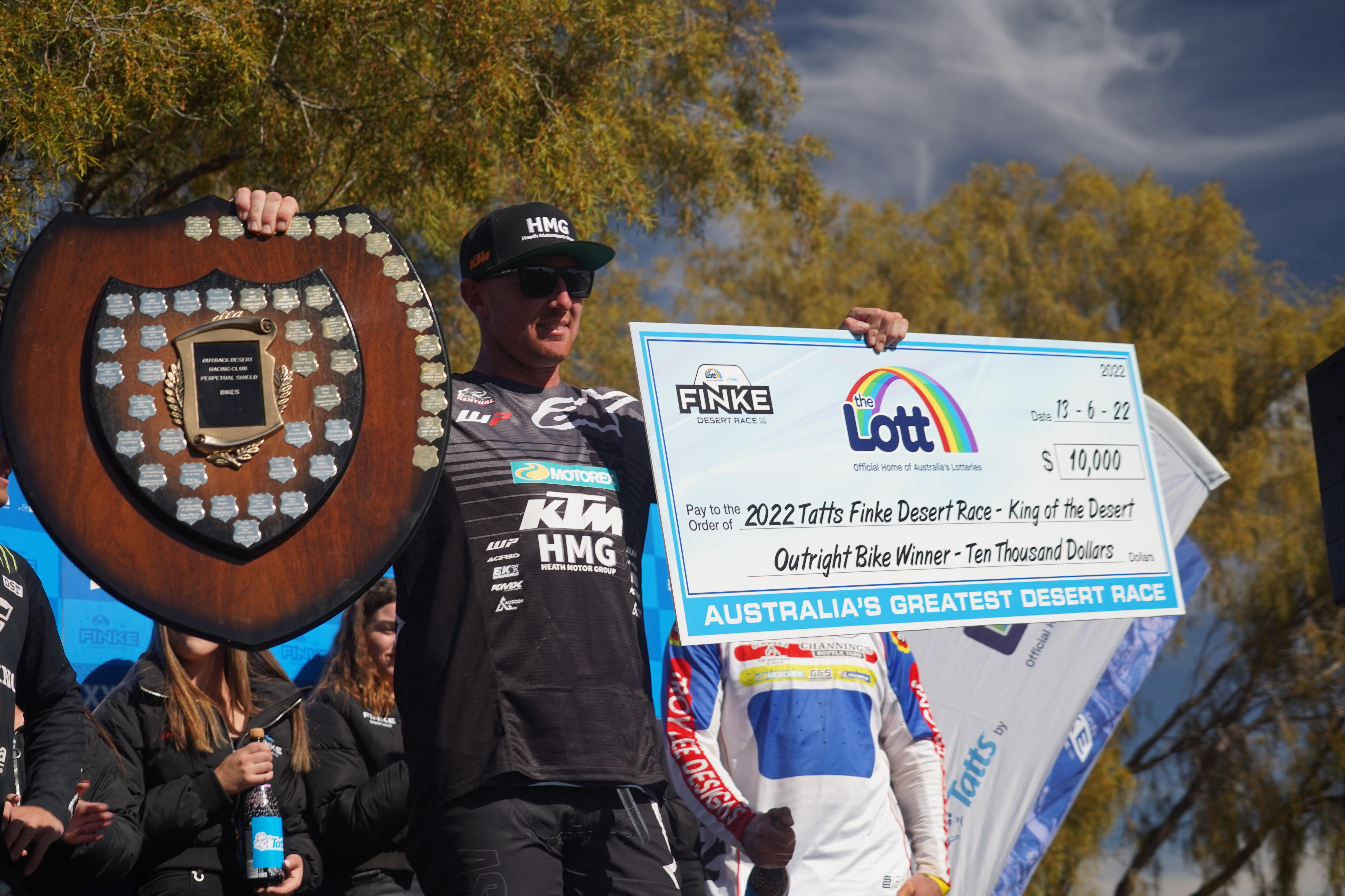 New South Wales rider Jacob Smith took second place on the podium in his 13th Finke race, with West Australian Jack Simpson, just 43 seconds behind, coming in third.