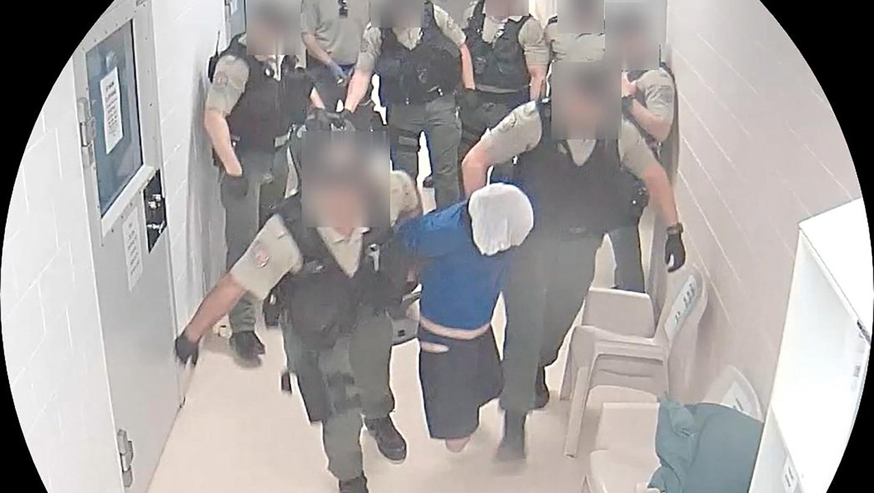 An inmate who suffered a seizure was put in handcuffs and a spit hood by prison guards who left him naked in an "at-risk cell" before he died two days later.