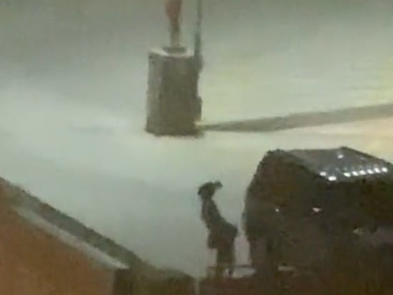 "This girl went to the top of a parking garage to twerk to the prisoners across the street, and they're flashing their lights for her," the caption on the screen reads.