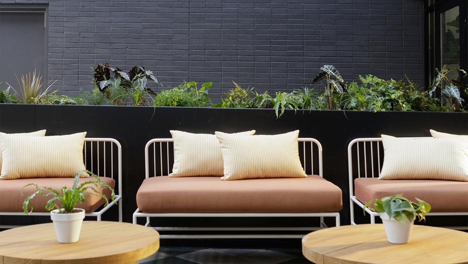 Atlanta is nicknamed “the city in a forest” for its abundance of trees. As a nod to this moniker, the city’s newest hotel is The Sylvan, from the Latin word Sylva, which means ‘wood’ or ‘forest.’ Led by Goodrich and Kimpton’s Design Team, the very space within the hotel is visually connected to greenery both inside and outside, with elements of the surrounding nature placed throughout; rich greens, warm wood tones, hand-crafted ceramic details and live plants. Willow Bar, a natural wine garden bar, is a garden escape in the heart of the city, with a towering willow oak tree looming overhead, cafe lights strung throughout, a climbing vine wall and plenty of lush greenery, creating an enchanting outdoor garden atmosphere and further emphasizing the hotel’s intent to honor and preserve nature within the city.