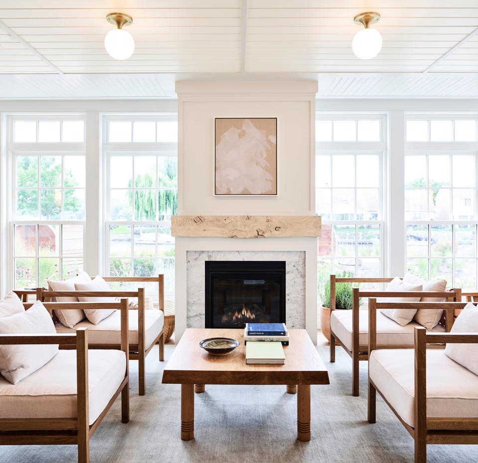 Cate Mills, Vice President of Design for Long Weekend, says, “I designed the Willowbrook Spa with full intent for the light and airy colors, textures and atmosphere to feel cohesive with that of The Lake House on Canandaigua. I brought specific plants directly from the property grounds inside as well as herb sprigs to flavor chilled water or place them in bud vases for their scent and greenery. I used locally sourced white oak wall paneling and hand carved Beech slab for the fireplace mantle, both native to the region. It was important for me to evoke a sense of the region in this space since there are so many wonderful plants, herbs and flowers that grow naturally in the Finger Lakes.”