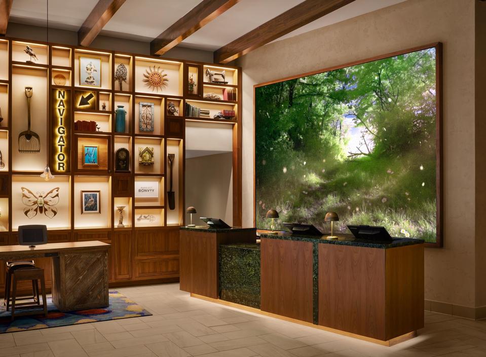 Located among Chelsea’s flower district, The Renaissance sits on the former site of the famed Chelsea Antiques Garage. Wally Aubuchon, Senior Interior Designer at Stonehill Taylor says, “Our design concept at Stonehill Talyor centered around a secret garden tucked away in the streets of NYC. To channel the site’s history, we layered in hidden treasures throughout the public spaces and guest rooms, leading guests through an experience of wonder and discovery. Lush greenery weaves throughout the lobby arcade as well as in the penthouse bar and rooftop outdoor pool, giving the feeling of an oasis at one of the highest rooftop pools in the city.”