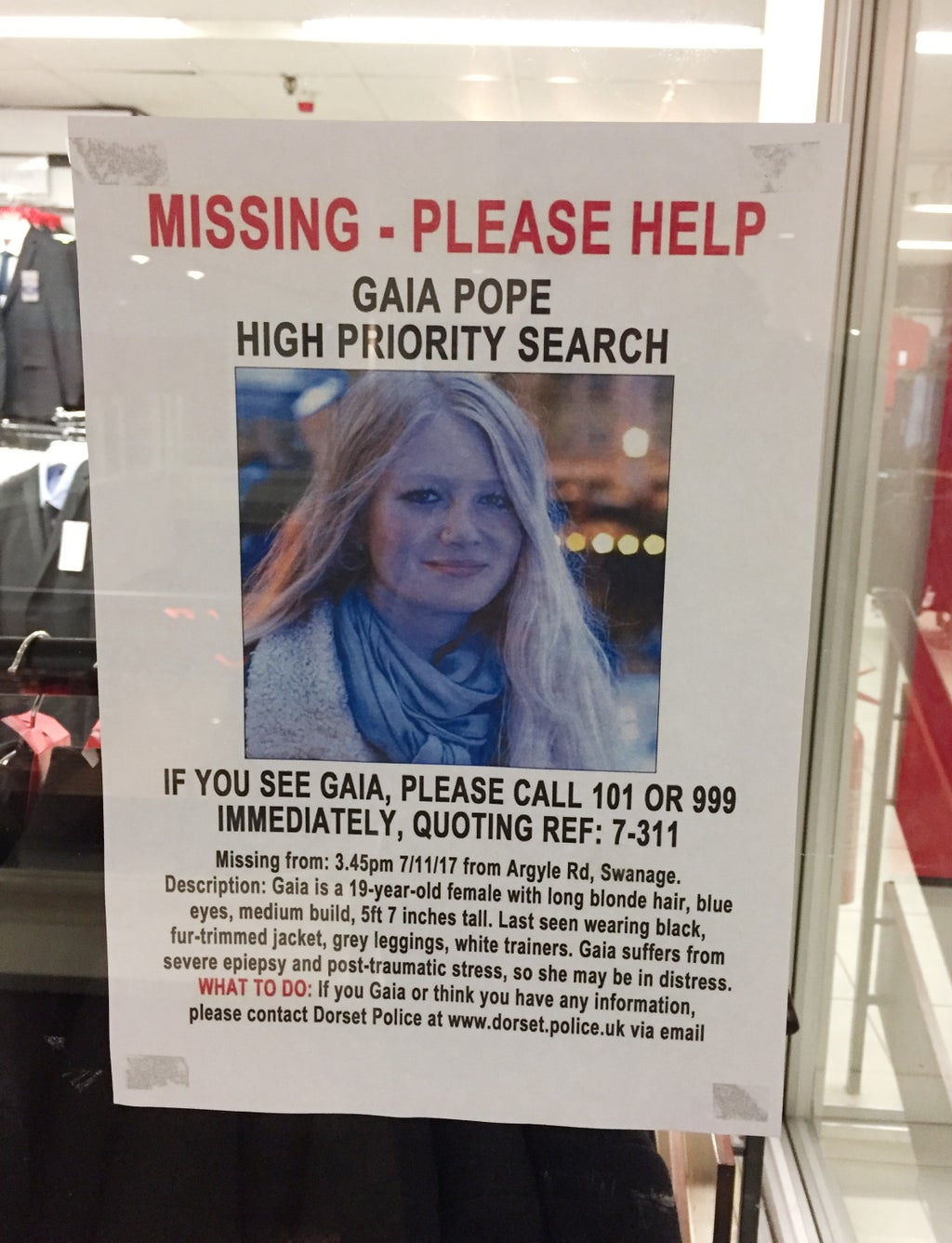 Ms Pope called again at 4.24pm, describing her niece as a “lost person” and saying she was “worried for her safety”.