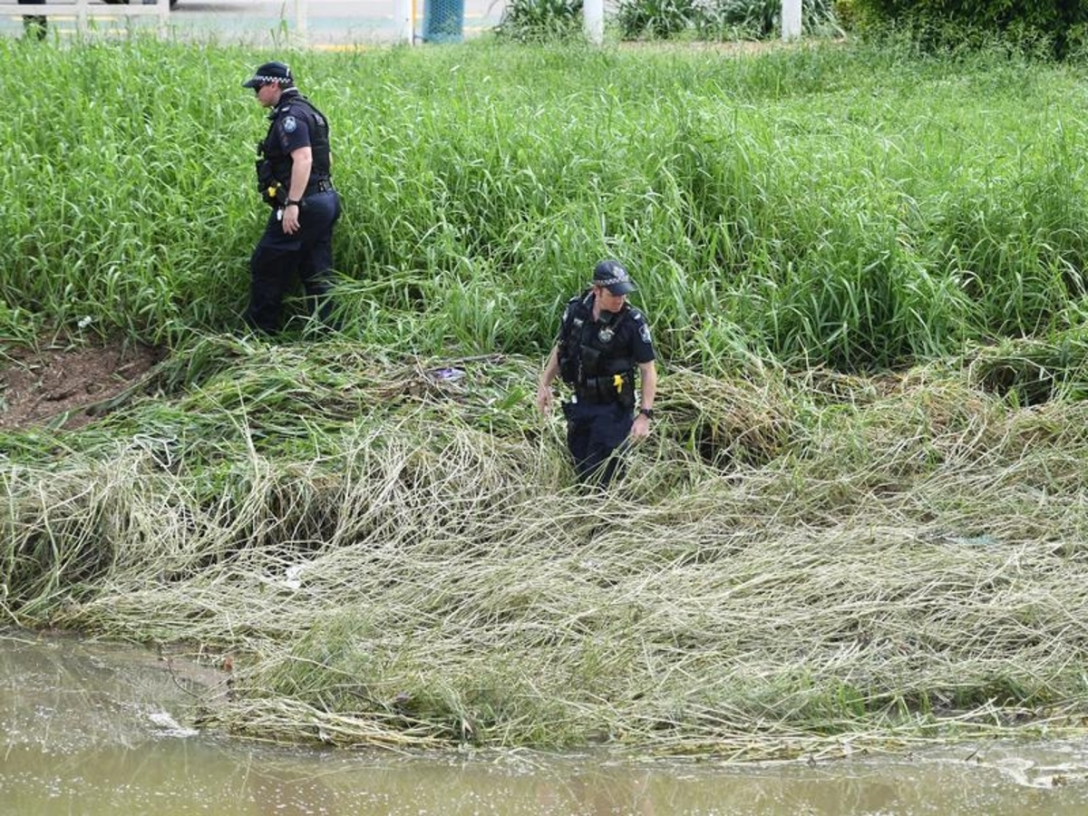 An officer saw them use a trolley to jump over a fence and enter the flood waters.