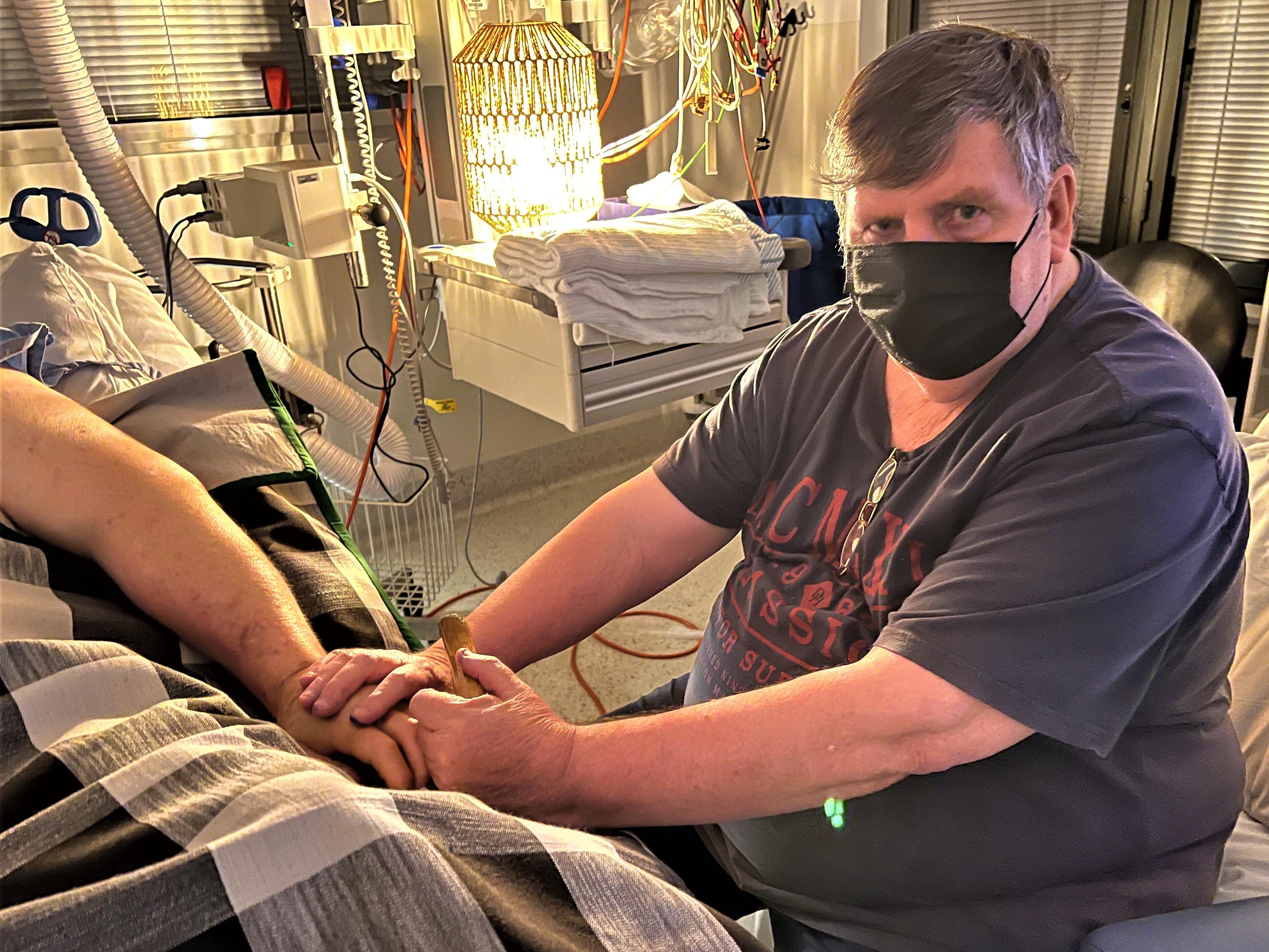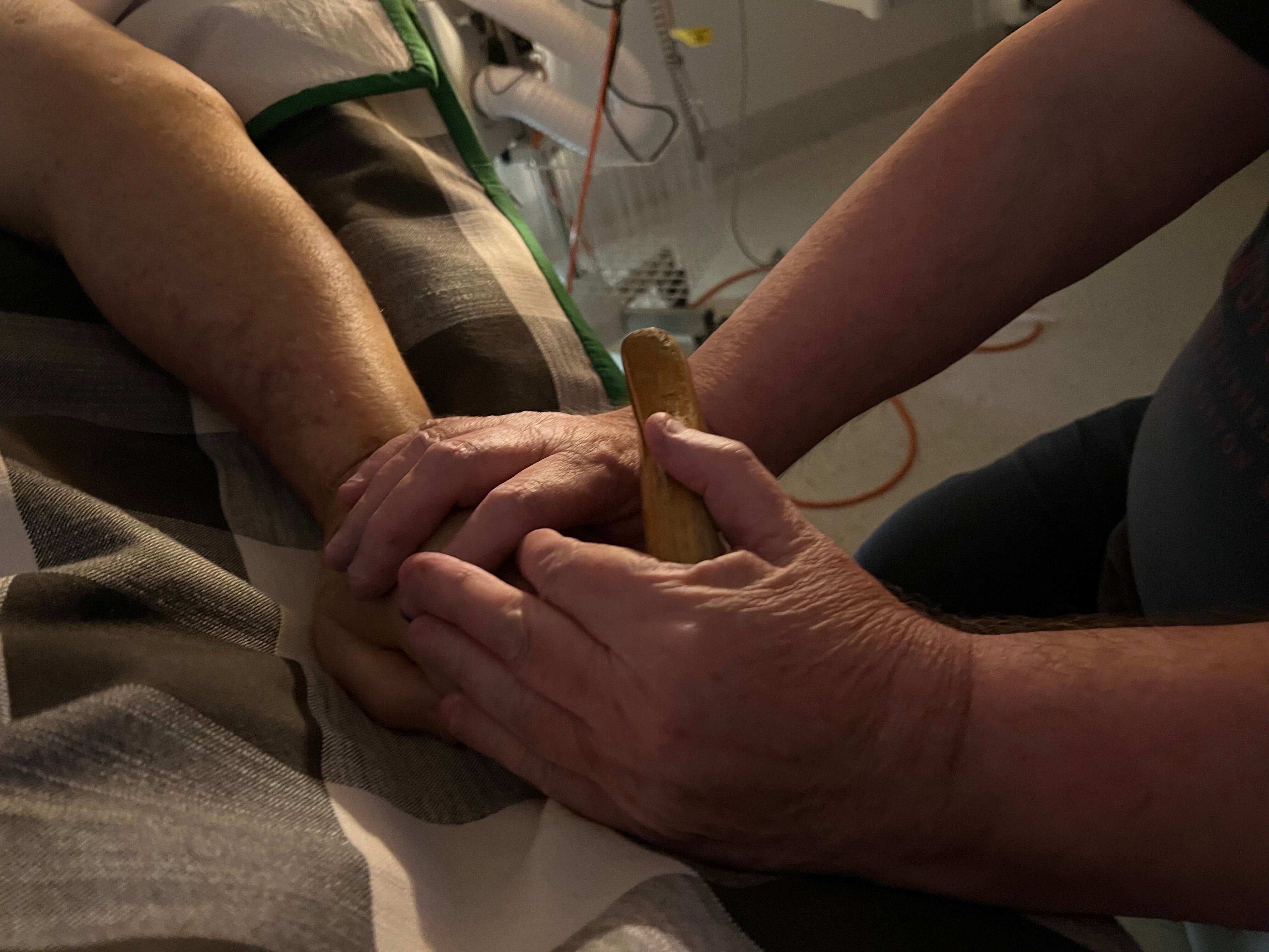 "This is unfortunately the end of the road," he tells his best friend as he holds his hand. "I've told the staff that I'll stay until the very end."