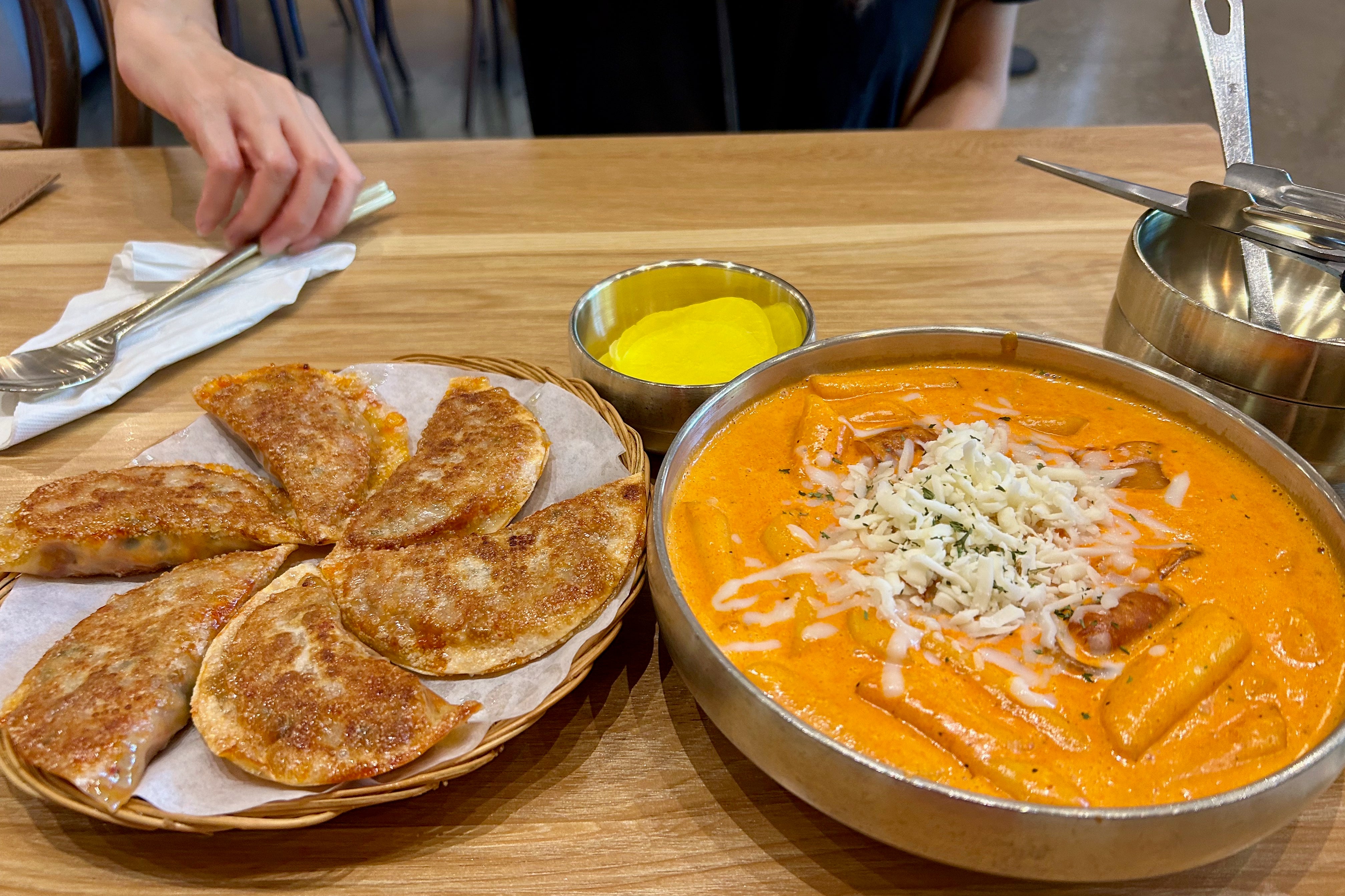 A spiral of fried kimchi mandu arrives alongside rose tteokboki; it is more orange and creamier than I expect. The chilli tingles on my tongue and I realise that Korean rice cakes resemble dense pasta. Sally explains: “Adding cheese to tteokboki gives it an earthy, smoky flavour and makes it more photogenic.” These small twists on tradition mean the restaurant appeals to all generations who want to eat out together.