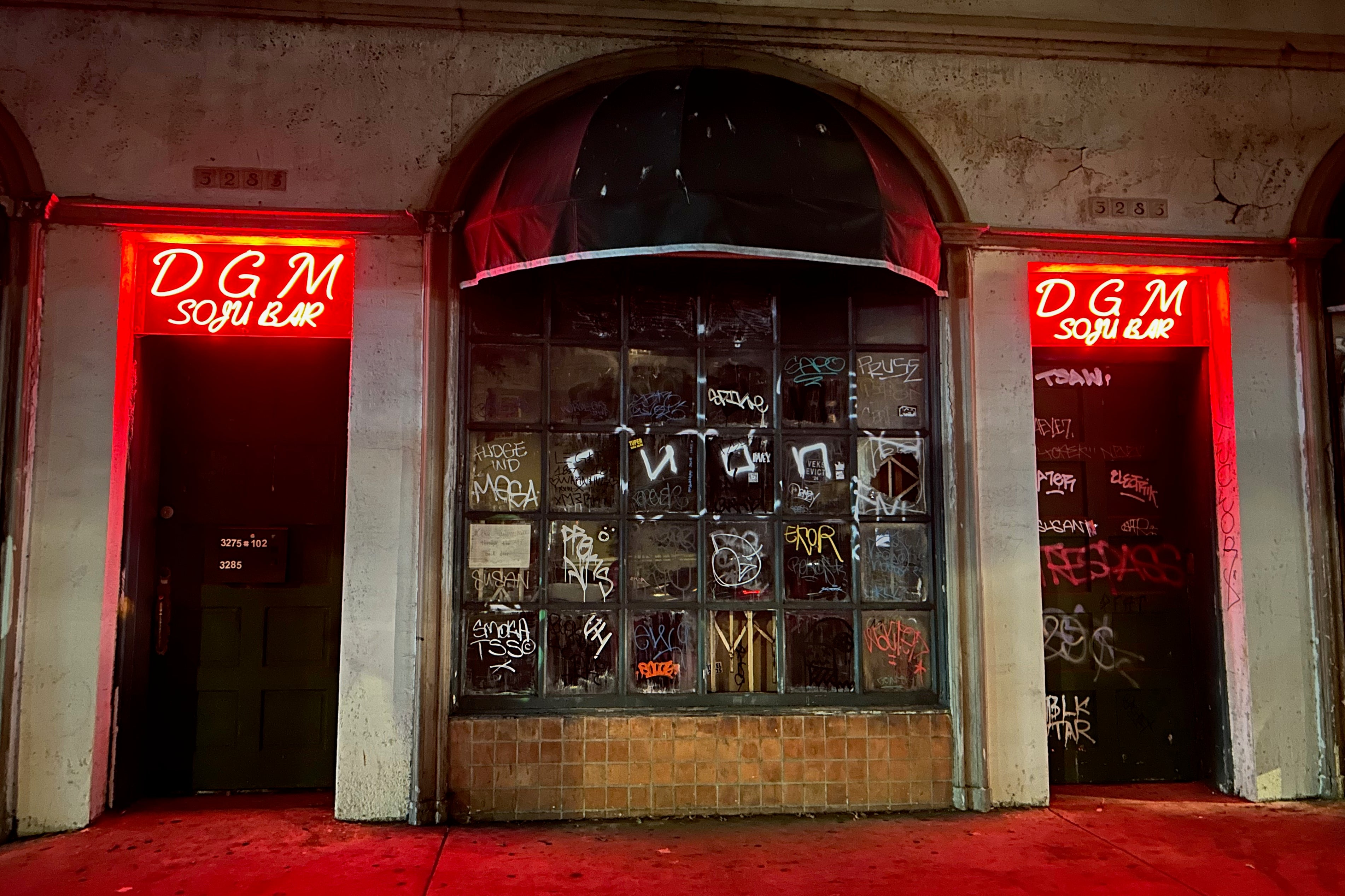As I stand nervously in the dark, a street lamp flickers and the sound of a car exhaust echoes down the empty six-lane street. Stepping back from a locked green door, I glance up at the red neon sign reading “DGM Soju Bar” and wonder how to enter. A young Korean-American greets his friend on the corner, eyeing me with quiet suspicion.