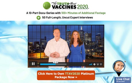 Click the orange button, his wife says, “to join in the fight for health freedom” — or more specifically, to pay $199 to $499 for the Bollingers’ video series, “The Truth About Vaccines 2020.”