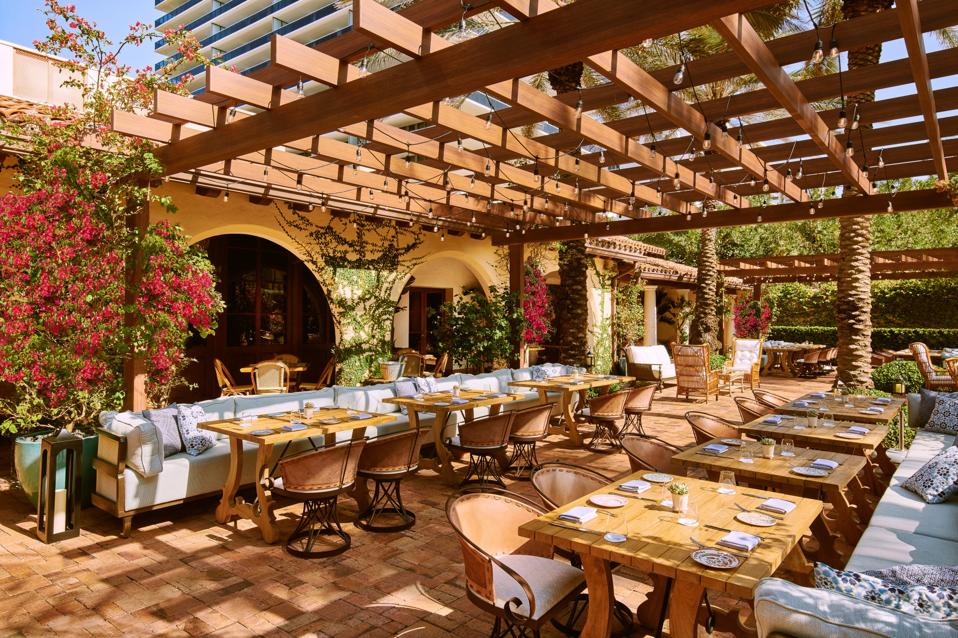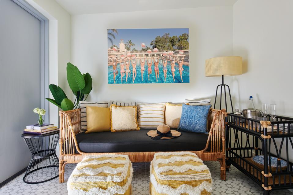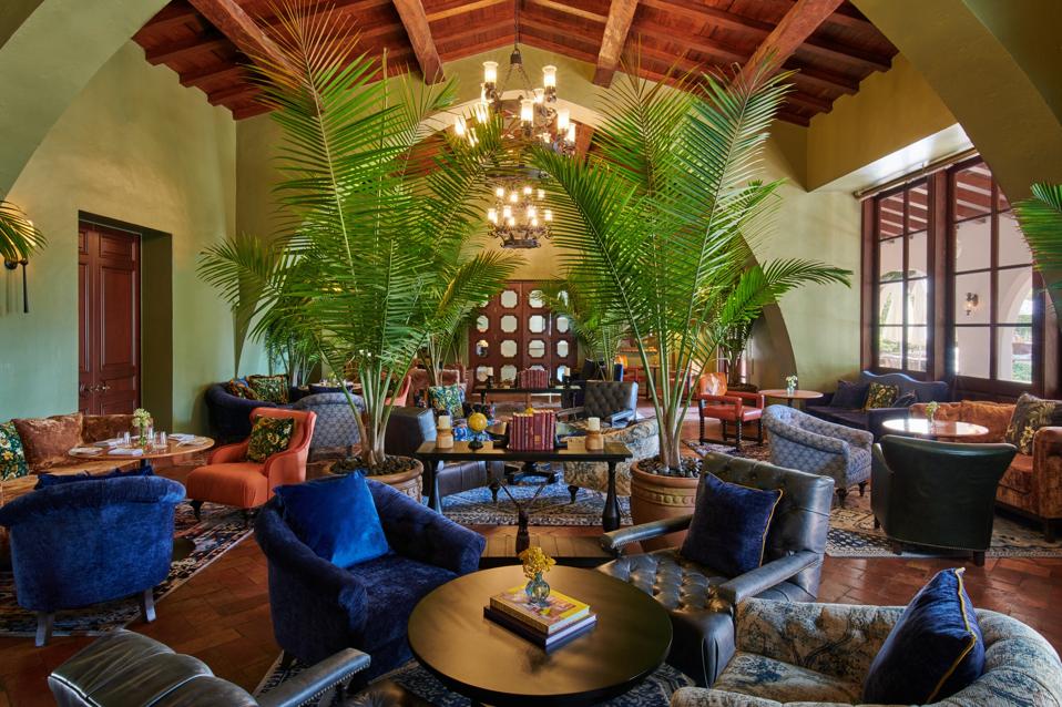 Almost 20 years later—after an extensive renovation—The Bath Club officially reopened its doors this March. The club’s original romantic architecture was refreshed by Miami-based female designers Jamaican-born Allison Antrobus and Filipino-American Ruby Ramirez (formerly Antrobus + Ramirez). “The inspiration came from the Mediterranean Revival architecture of the building,” Ramirez shares with Forbes. “The muted gem-tones paired with the nostalgic throwback to the 1920s reflect a building stopped in time, layered with the fresh sensibility of a modern-day beach club.”