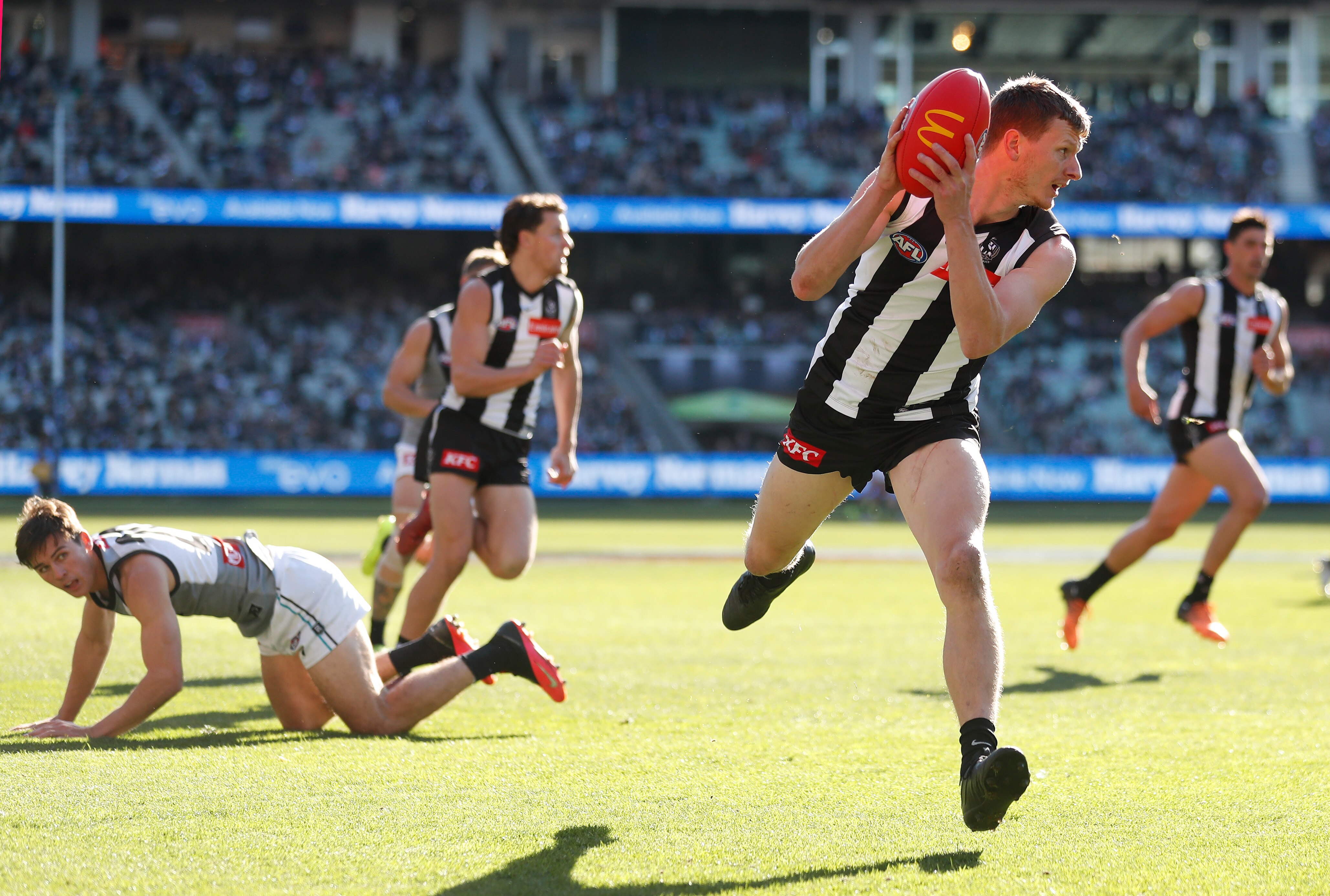 Both clean up a lot of ball, loose and hard, due to the solid work of Collingwood's swarming defence up the ground.