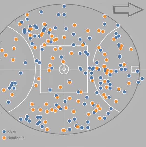 Green is also able to influence the play later in the chain of possession if needed, with his kicks inside 50 generally targeted the right way.
