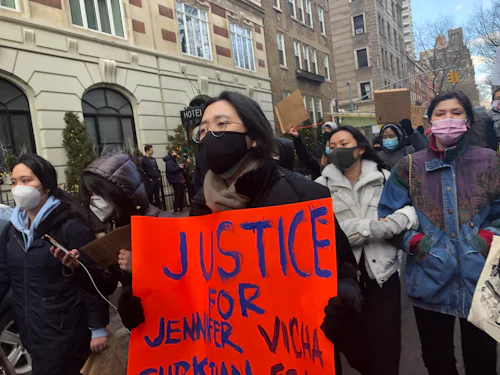 “Anti-Asian sentiments did not start at the beginning of the pandemic. But it did heighten to threatening measures with politicians that uphold white supremacy openly or express their anti-Asian sentiment by calling it the ‘Chinese Virus’ and blaming it on the Chinese," East Asian student activist Jessica Tsui said to the crowd of protesters huddled around the Washington Arch. “A lot of this gave the green light to harass the Chinese,” she said.