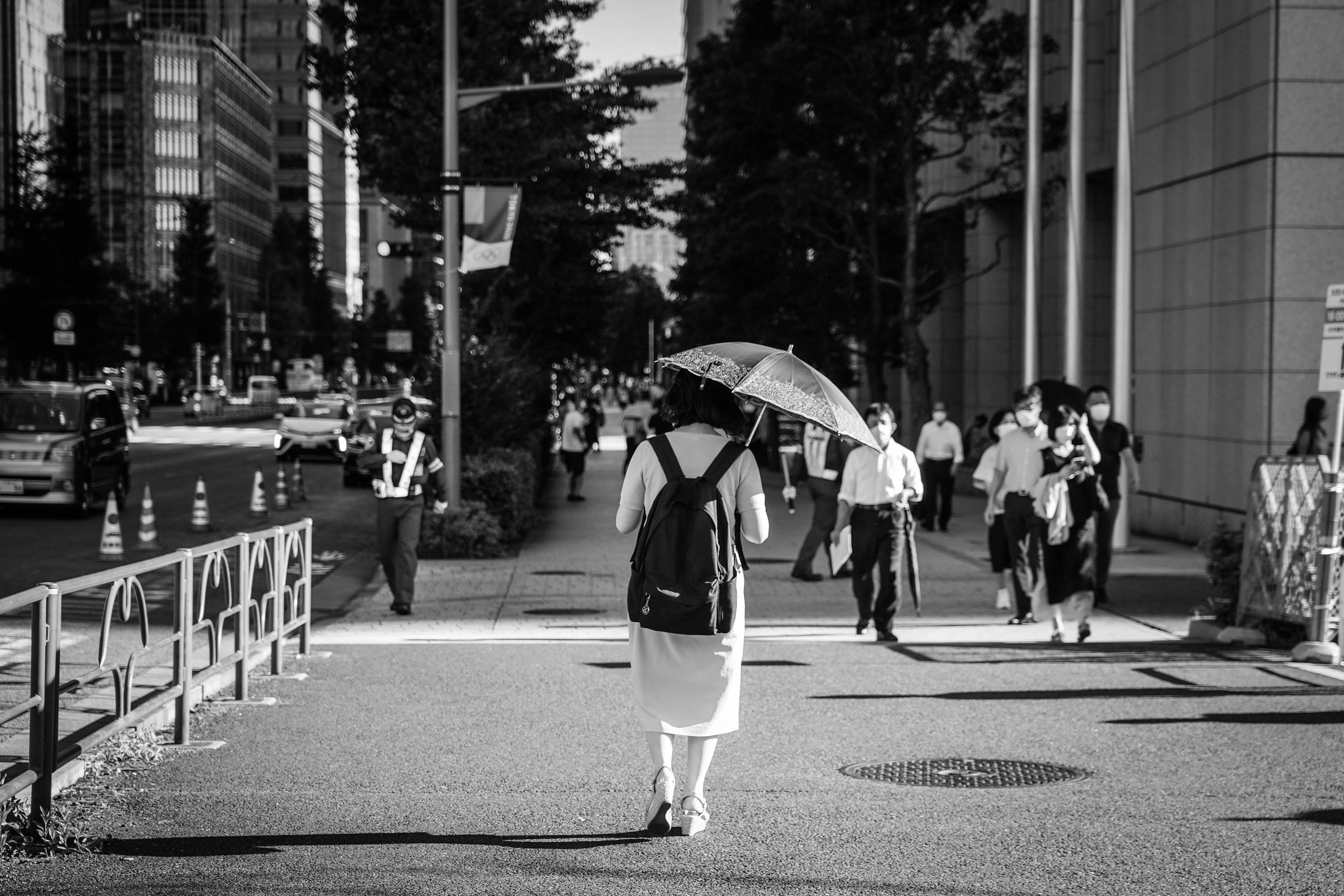 It's blisteringly hot and many Japanese people wisely use umbrellas for shade.