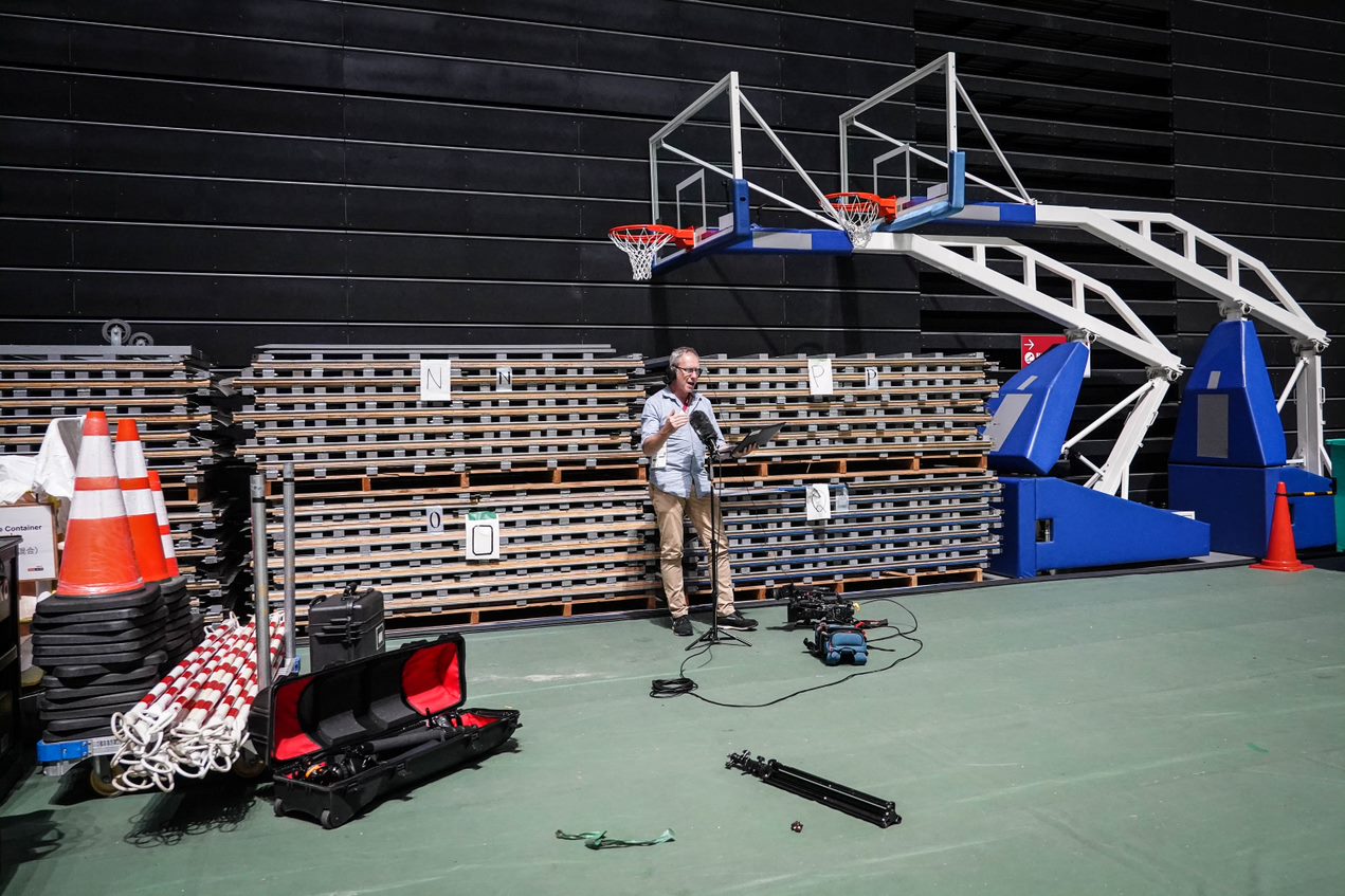 Matt and I were here a few days before and it was relatively quiet, but suddenly thousands of people are in the streets looking up at the outside of the Japan National Stadium – hoping for what?