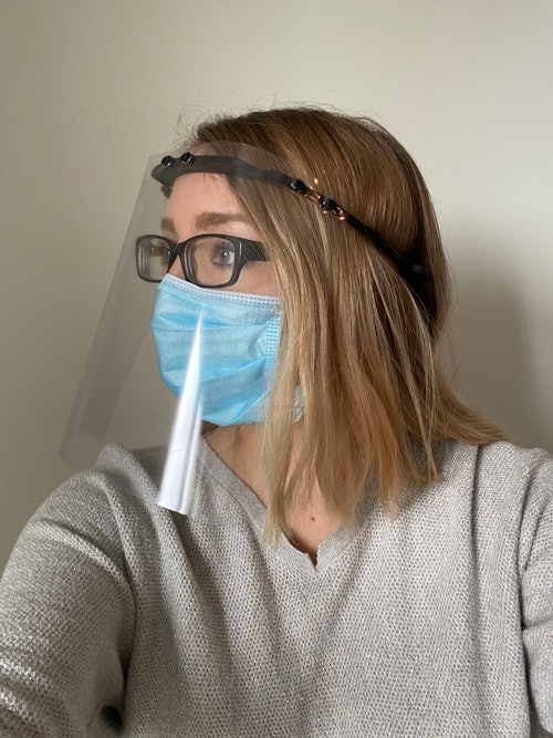 To get the PPE to people in need, Strang said the group started performing outreach to local hospitals in Jersey City. "At the start of this, the ask was however much we could provide," she says. As they've become more established, Strang says hospital staff and nurses have contacted them directly about their needs. "Our volunteers deliver the shields directly to the hospital, sometimes meeting nurses or staff in the parking lot when the need is urgent." Since the team started operating mass production in mid-May, they have been able to take direct requests from hospitals and individual workers across other industries who are in need of shields.