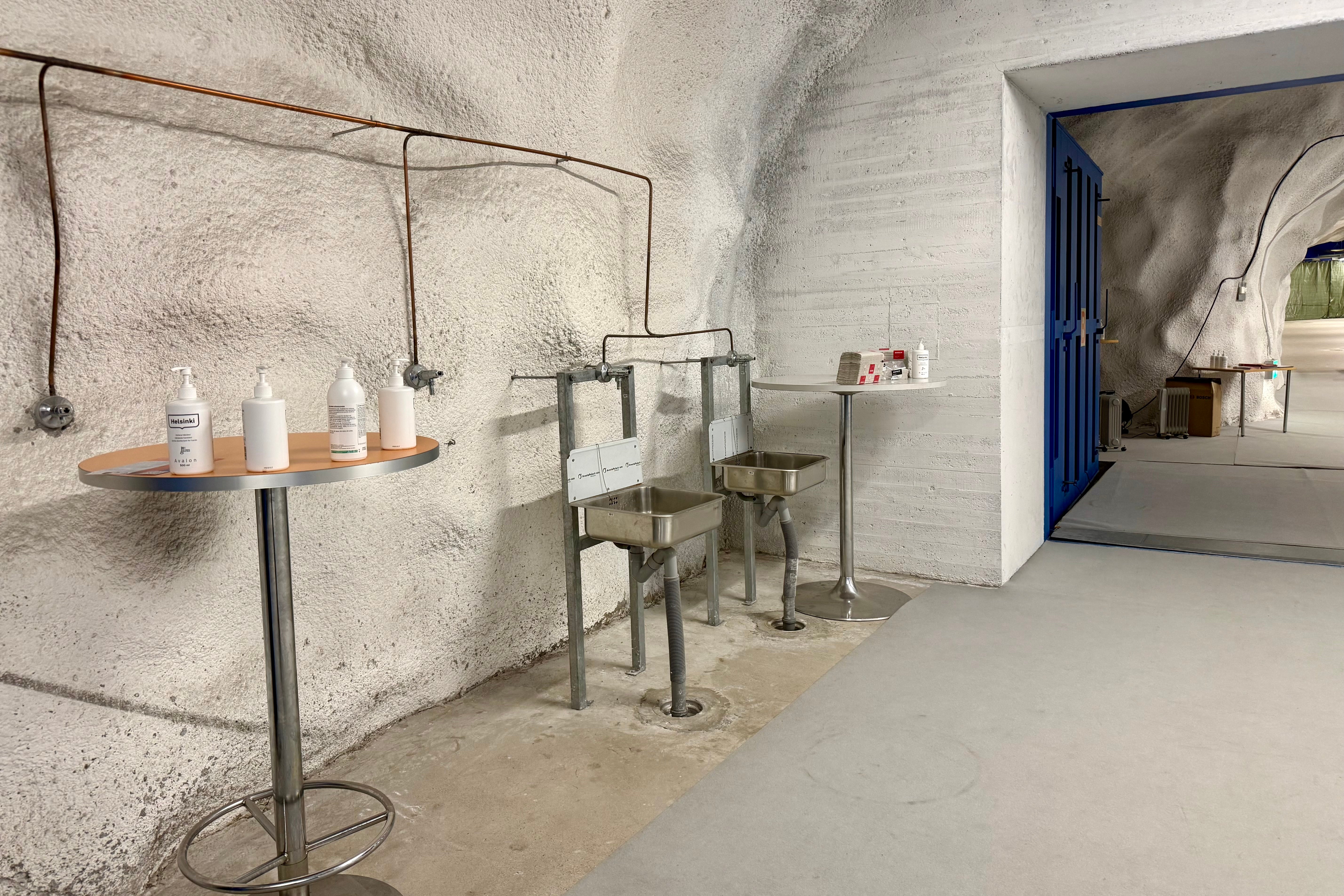 In an emergency, after passing through this double entryway, local residents arrive in a sealed decontamination chamber where there are taps and showers to wash toxic materials from clothing, before passing through into the main bunker cut deep into the bedrock 25 metres below Finland’s capital.