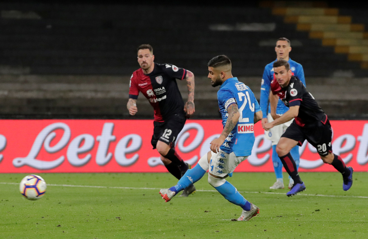 Leonardo Pavoletti had put the Sardinian side in front in the second half but Dries Mertens’ header for Napoli five minutes from time levelled the scores before Insigne converted the late winner from the spot.