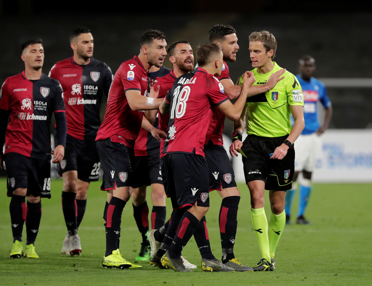 Napoli were then awarded a penalty for handball following a Video Assistant Referee (VAR) review deep into stoppage time, resulting in a red card for Cagliari midfielder Artur Ionita for dissent.