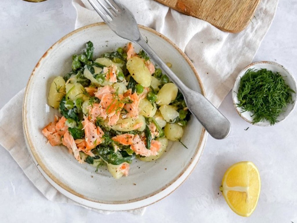 Gnocchi is made of potatoes, which provide a great source of carbohydrates to help replenish lost glycogen, and the salmon is a source of protein and omega-3. Protein is important for muscle repair and recovery while the omega-3 has anti-inflammatory properties, which can help reduce inflammation that can occur through exercise.