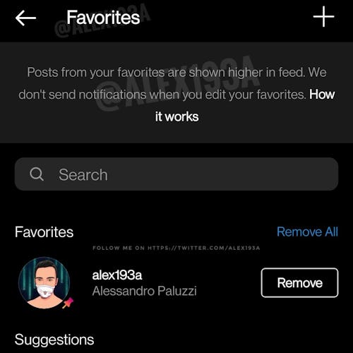 Instagram told Input in a statement that Favorites “is an internal prototype that’s still in development, and not testing externally.” The company often experiments with new features that are spotted by internet sleuths; there’s no guarantee that Favorites will see the light of day.