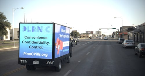 The message “Missed period? There’s a pill for that” appeared in English and Spanish, along with the hashtag #TXDESERVESBETTER, on a digital billboard on the side of the organization’s truck. The trip, which began on Friday, Aug. 27, was taking place under the looming shadow of SB 8, the controversial Texas law that bans abortions at six weeks. (The law came into effect Sept. 1.)