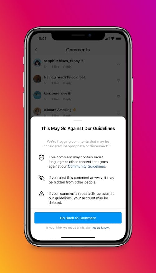 Instagram is also expanding its more automatic anti-abuse filtering systems. There’s already an automatic warning that pops up for users when they’re about to post a potentially hateful comment, but Instagram is now making the first warning a stronger one. The company says about 50 percent of the time this warning actually does work, prompting the user to delete or edit their comment.