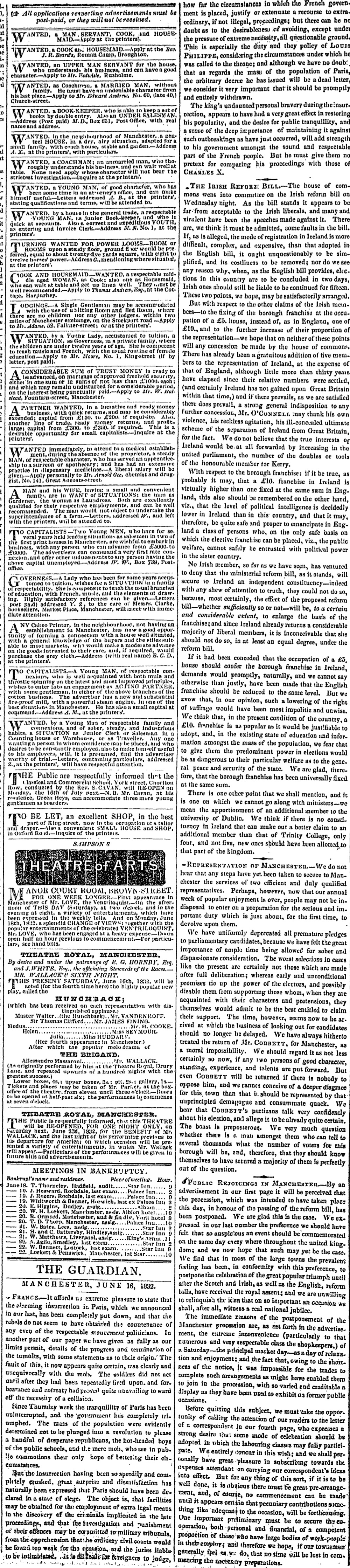 All men who have looked with attention at the divisions of parties – the state of Government, and the progress of events, during the last few months in Paris, must have prepared their minds for an attempt of some kind or other to speed the march of the Revolution of July, but we apprehend there are very few who will not feel surprise to learning the frantic & ill-digested manner in which the first movement has been effected.