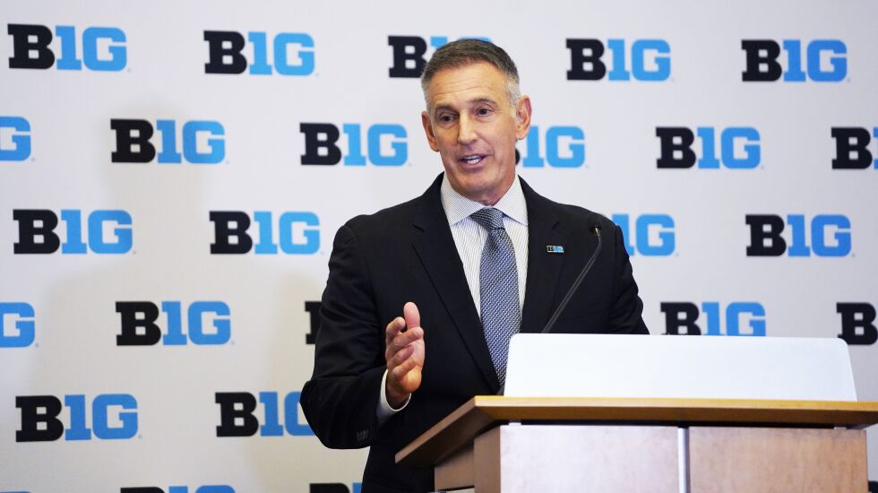 The longtime Major League Baseball and TV executive was introduced as the Big Ten’s seventh commissioner on Friday, just over two weeks after he was hired to replace Kevin Warren. Warren became president and CEO of the Bears.