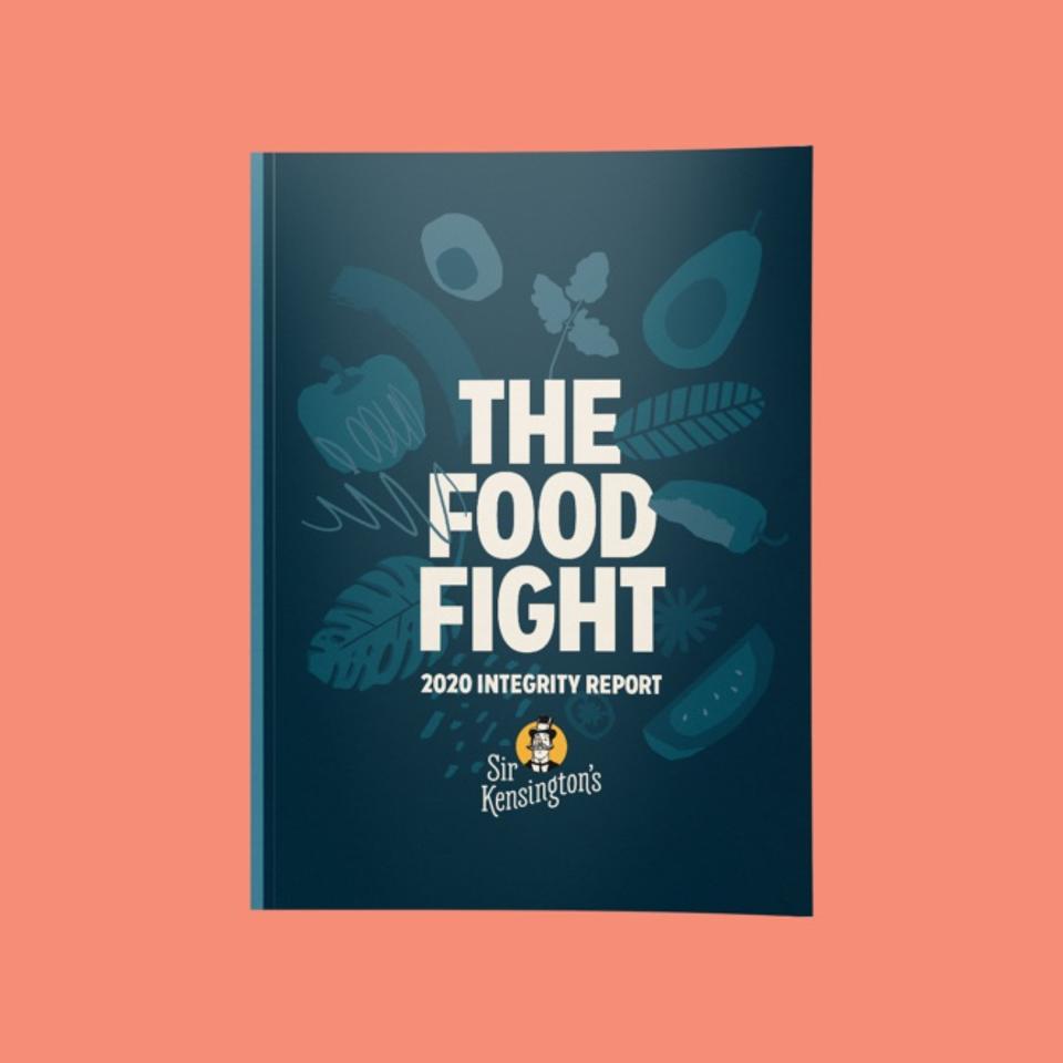 In a recent interview with Scott Norton, the co-founder of Sir Kensington’s and a Unilever advisor, he explained how prior to selling the company it was a sit-down with Paul Polman that convinced both co-founders that Unilever was the right home for Sir Kensington’s. “Food is a Holy, 3 times a day sacrament – it’s food that truly impacts our life and our planet and Paul understood that.” said Norton. The collective commitment to make Sir Kensington’s a leading brand in the condiment business with purpose for serving communities in a healthy and just manner gave license for pushing the boundaries of food integrity leadership. Once integrated and able to leverage the synergies that come from a global multinational, the brand focused on becoming a Certified B Corp and driving self-improvement across all the certified programs ingrained in the business, from Fair Trade ingredients to their Non-GMO project. With an empowered and agile team, a relentless pursuit to reimagine how food is viewed has been at the core of their work. “Highlighting food’s charm, elegance and need for nourishing humans, as well as our planet, appears to be overlooked by others so it is up to us to claim it. Holding ourselves accountable first is our immediate priority – this isn’t greenwashing” according to Norton. Thus, the inaugural launch of the Food Integrity Report titled The Food Fight.