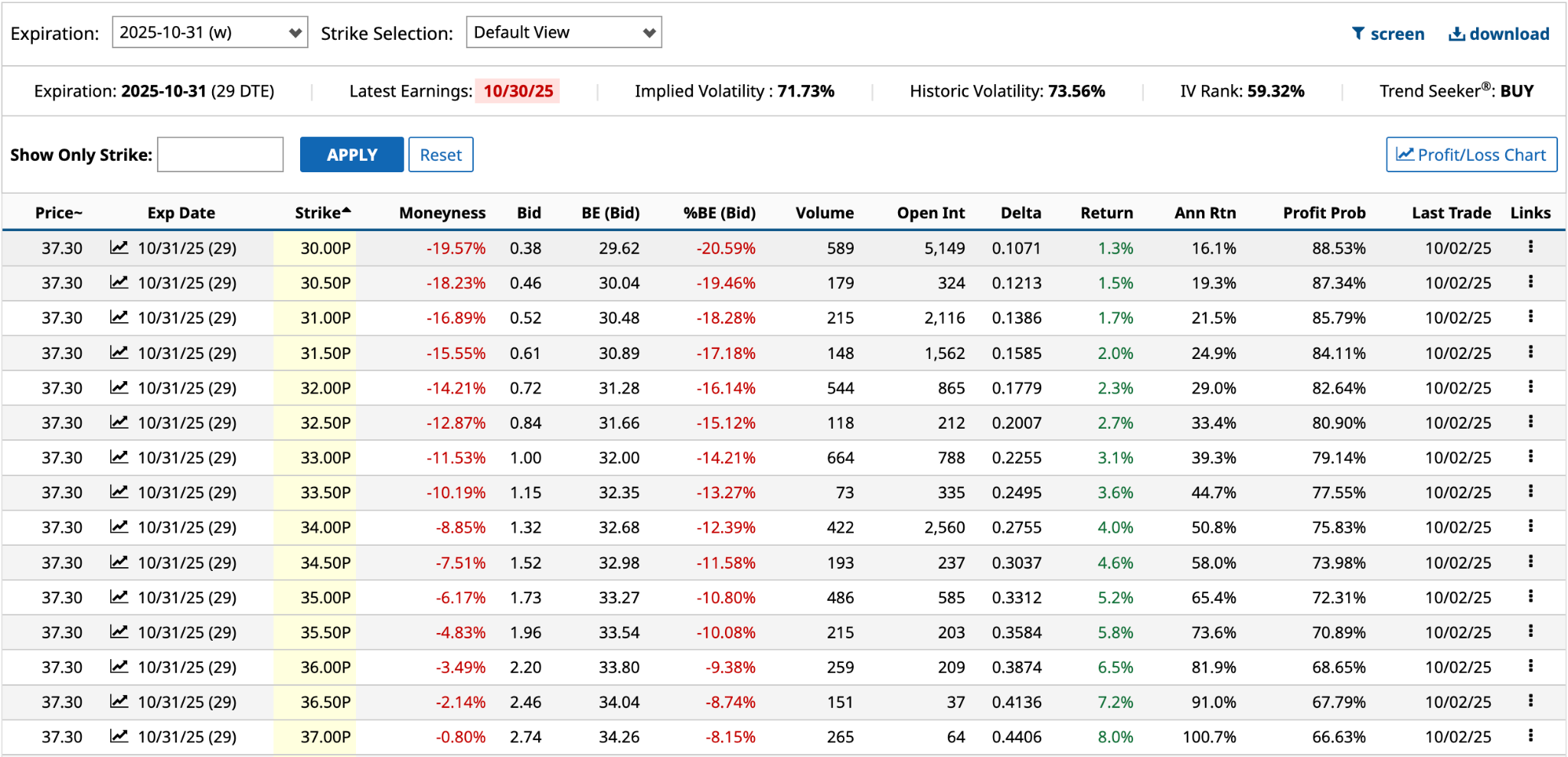 Here are potential Oct. 31 put strike prices that were OTM based on yesterday’s closing data.
