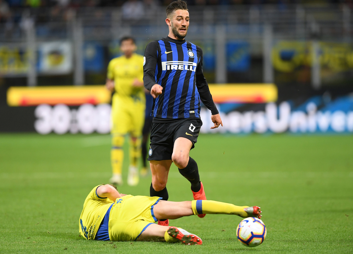 Soccer Football - Serie A - Inter Milan v Chievo Verona - San Siro, Milan, Italy - May 13, 2019 Inter Milan's Roberto Gagliardini in action with Chievo's Nicola Rigoni REUTERS/Daniele Mascolo